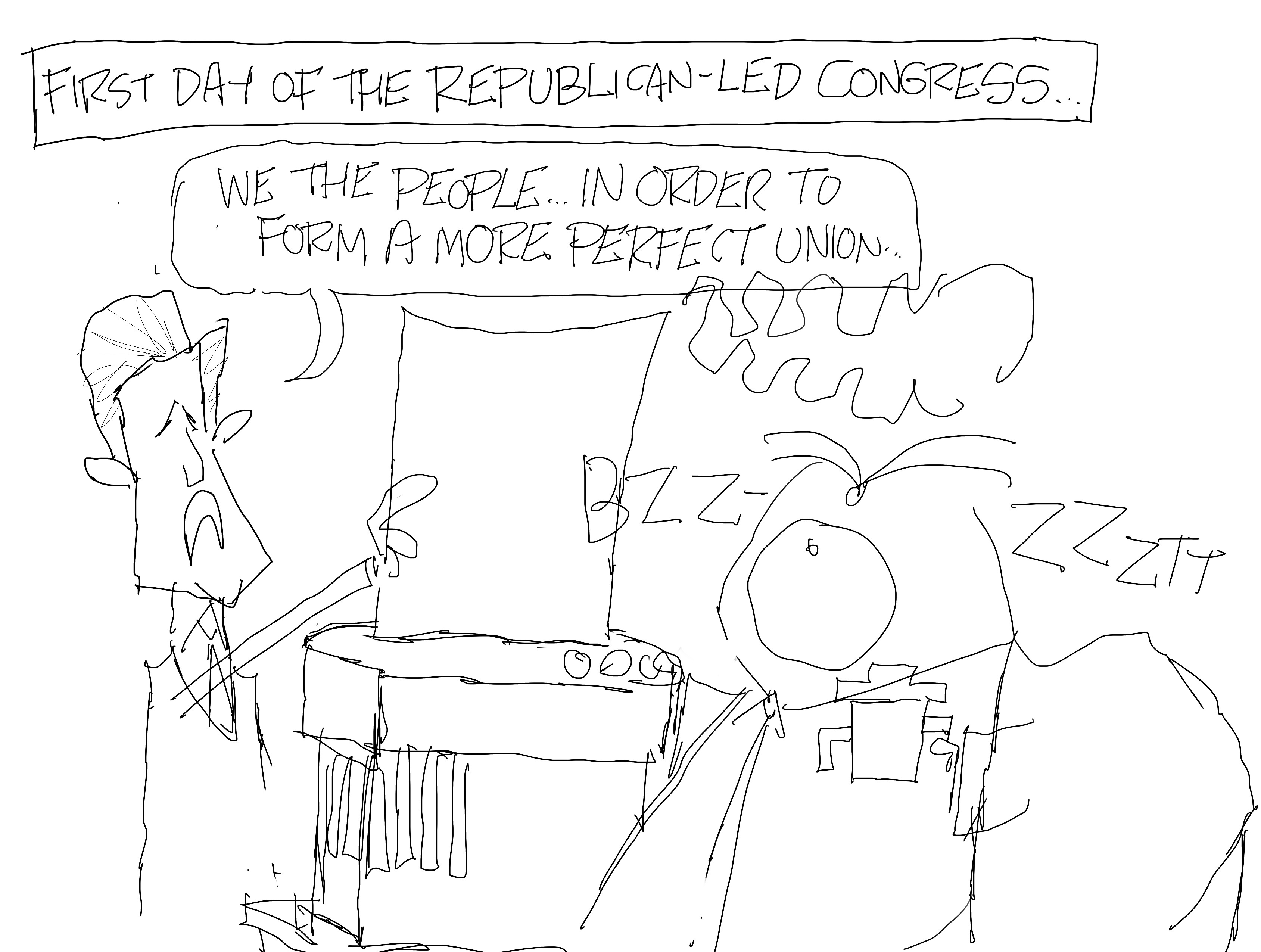 I drew this earlier in the week and it was intended to be the official cartoon, but I wasn’t digging where it was going, so I began again on a new canvas. I liked the way it turned out and several of my clients ran it. I thought it was an obvious concept but hadn’t seen anyone else take it on, until AFTER I did my cartoon. But that’s not really important.