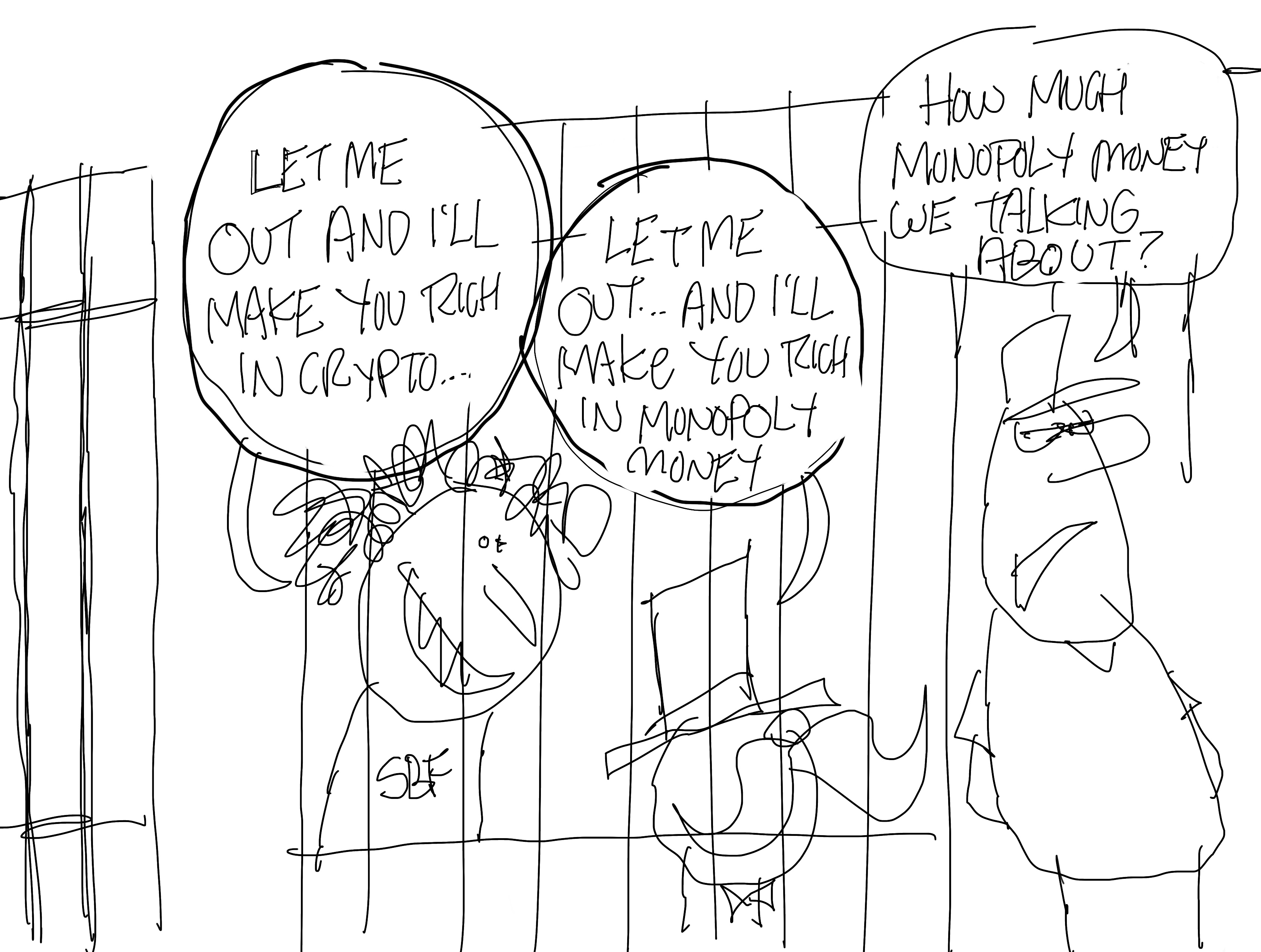 I decided to start writing again. Everybody liked this except for one of my proofers who asked why the Monopoly Man would be asking SBF to do the bribing? I was going to do this anyway but then…