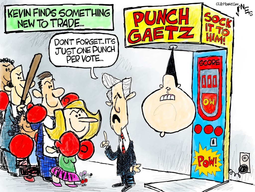 I have two questions for you: Who do you believe has the most punchable face in Washington and, how much would you pay to slap the taste out of Matt Gaetz’s mouth?