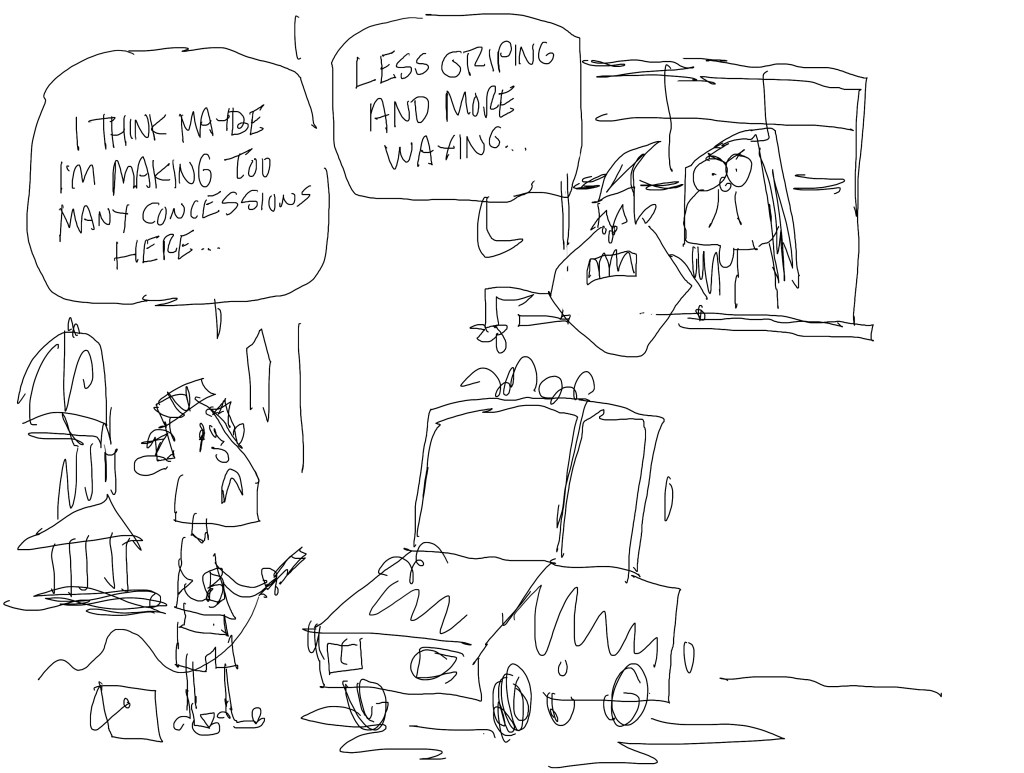 Ugh, I hate clown car cartoons and if you’re one of my colleagues who drew one during the Speaker drama or any time between 2015 and last week, well you sucked that day. But I thought it might be fun to turn the old trope around. But then I decided it wasn’t worth it. But now I think I kinda like it again.