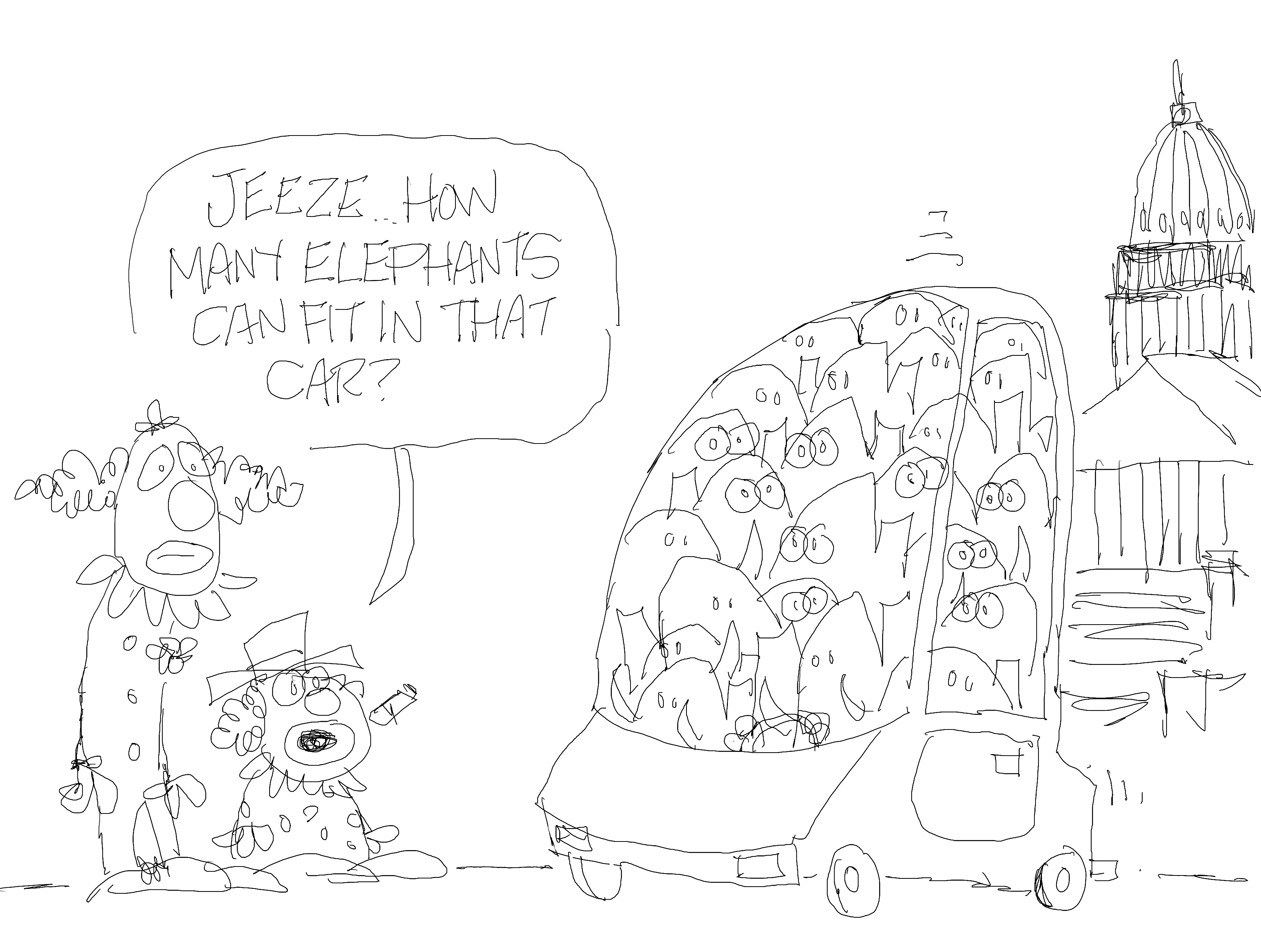 Ugh, I hate clown car cartoons and if you’re one of my colleagues who drew one during the Speaker drama or any time between 2015 and last week, well you sucked that day. But I thought it might be fun to turn the old trope around. But then I decided it wasn’t worth it. But now I think I kinda like it again.