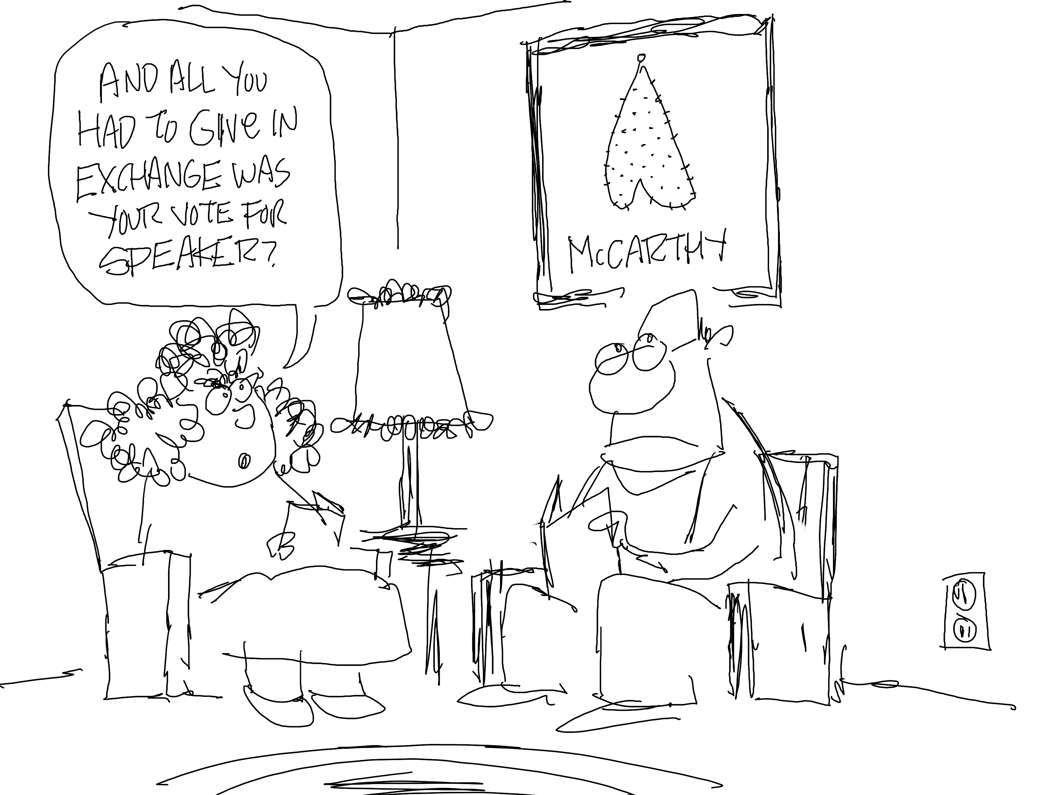 All these roughs are on all the drama around Kevin McCarthy failing to become Speaker of the House until the 15th ballot.