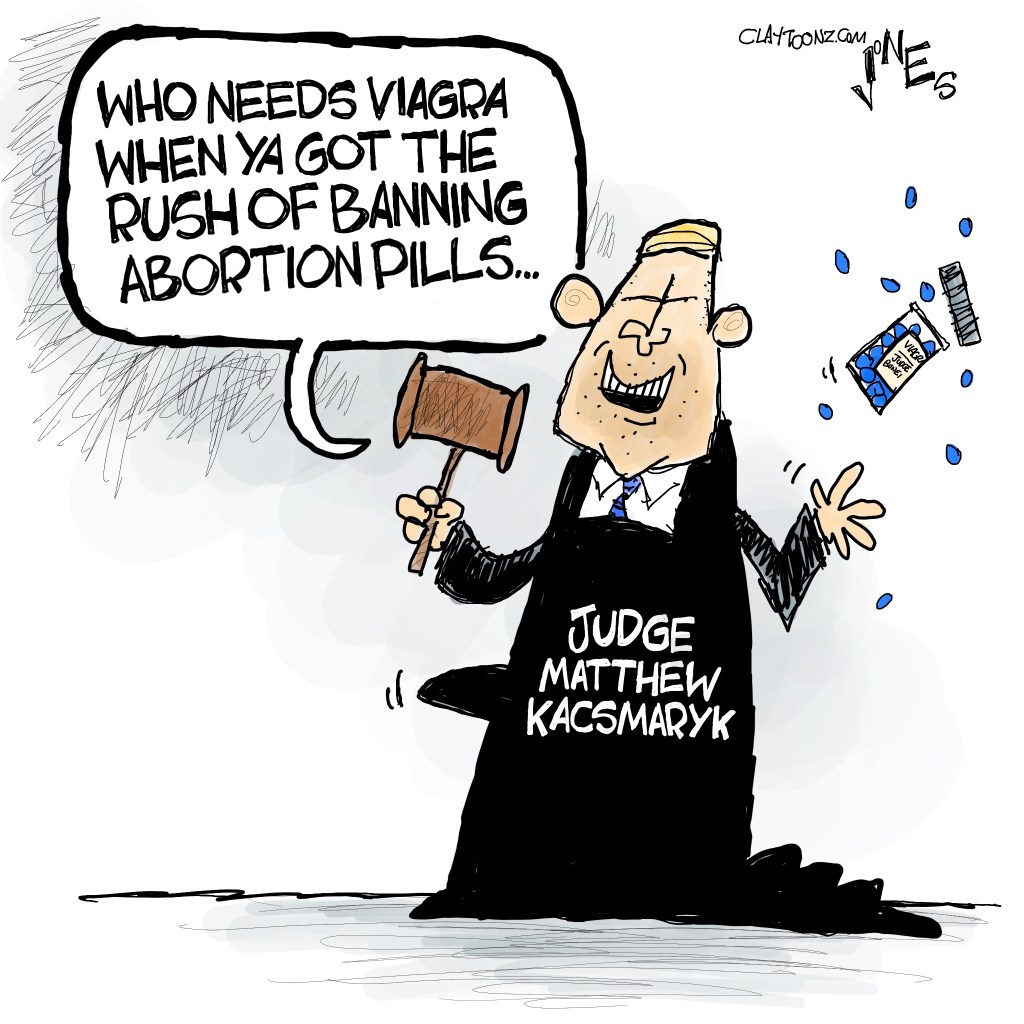 I’m going to draw another cartoon on this subject, probably tomorrow. I’ll blog about the issue with that cartoon. For this one, let’s look at the fundamentalist judge who just banned abortion pills for most of the country. I’m going to use the word “fundamentalist” a lot in this blog.