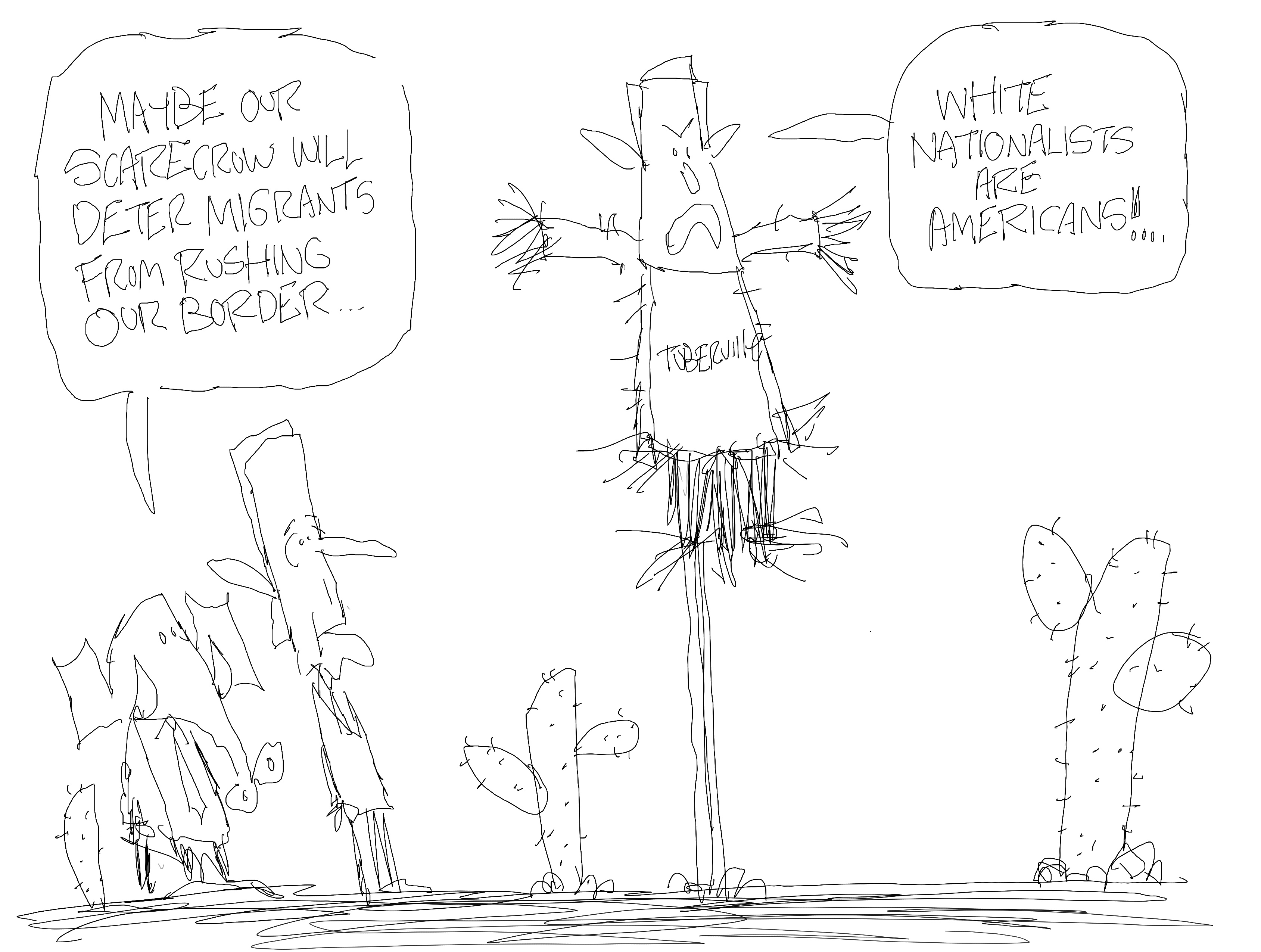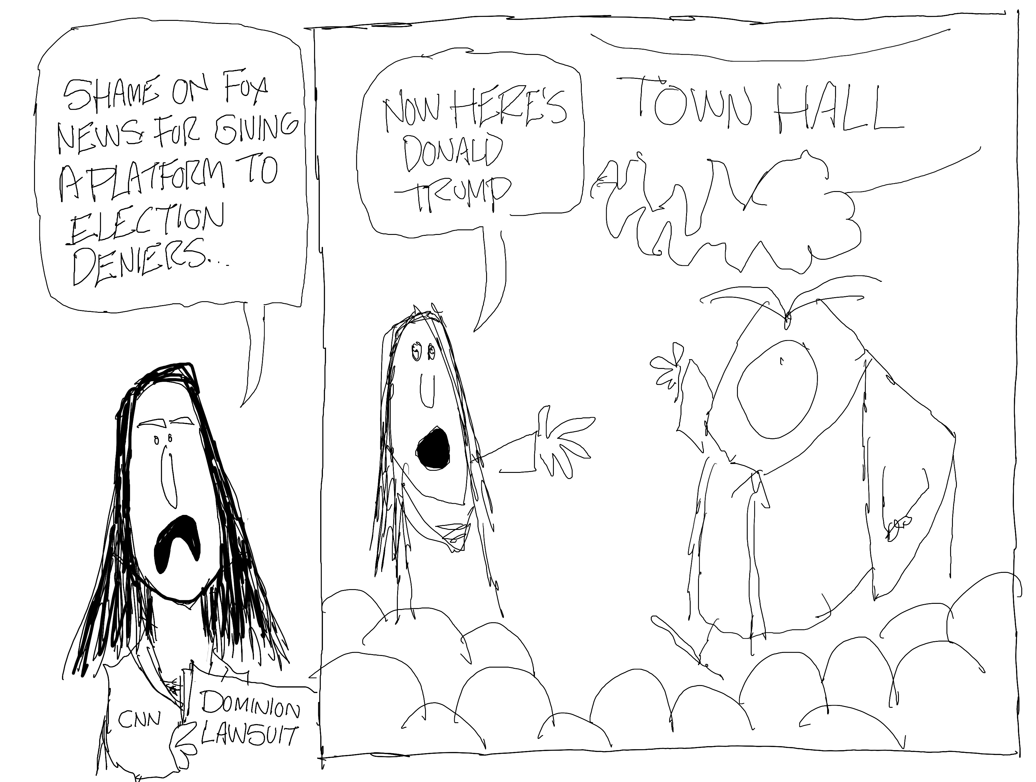 I drew this last week after the CNN Trump town hall. And right after I finished it, I thought of something liked a lot better, so I scrapped this and started on the other cartoon. I think I made the right call.