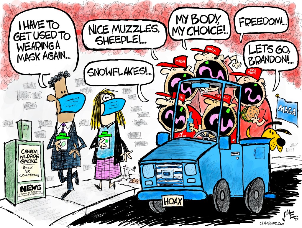 Hey, ‘my body, my choice’? … I know what I’ll do!! … “At least this time, what may harm them won’t be contagious. The shit that will get in their lungs from all this Canadian smoke will probably stay in their lungs.