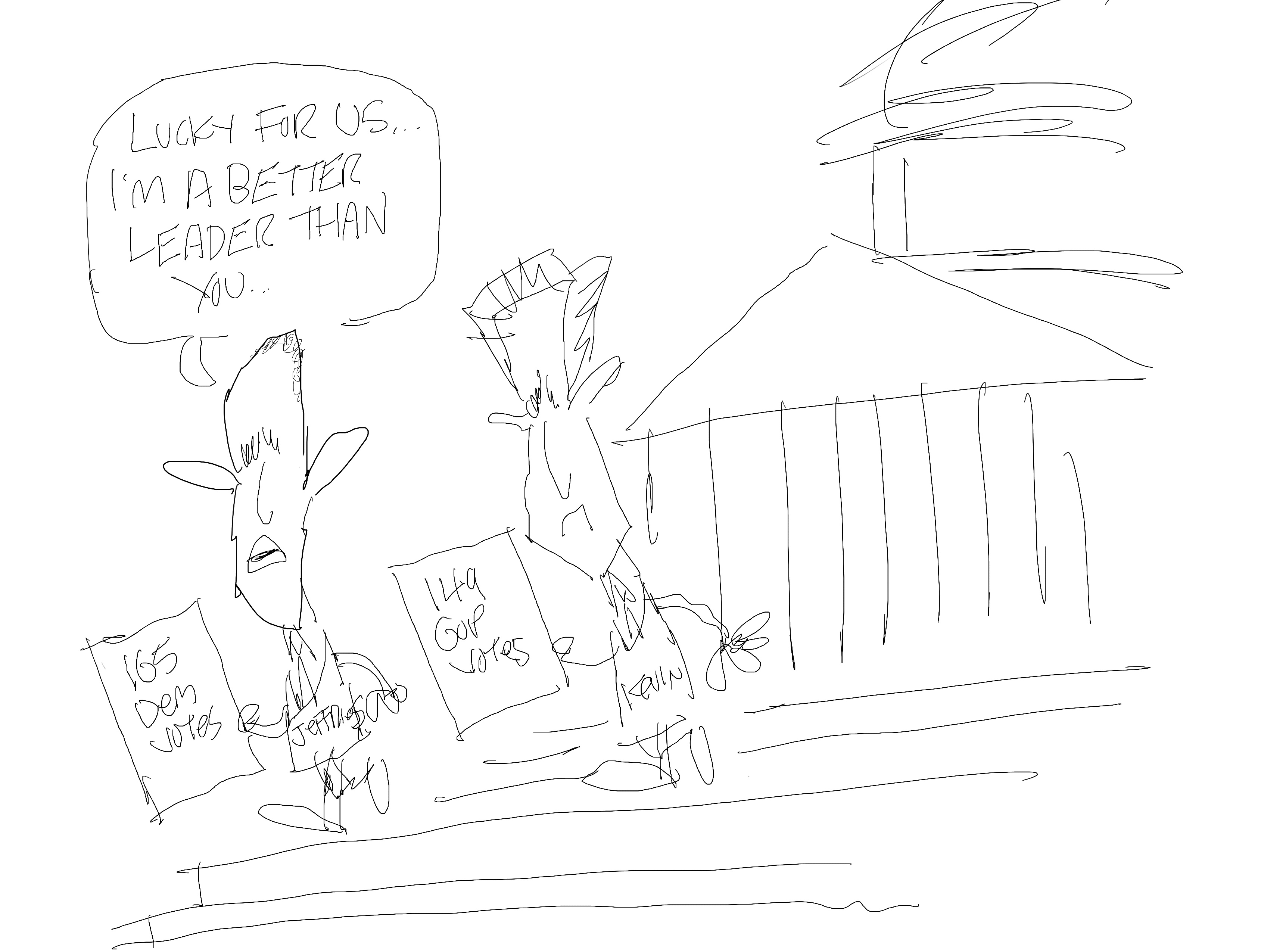 I really wanted to do this one but my proofreader Laura told me that Mike Luckovich had just done a poker one. I also remembered I had recently used the poker concept fairly recently and forgot about it. So I let this one go.