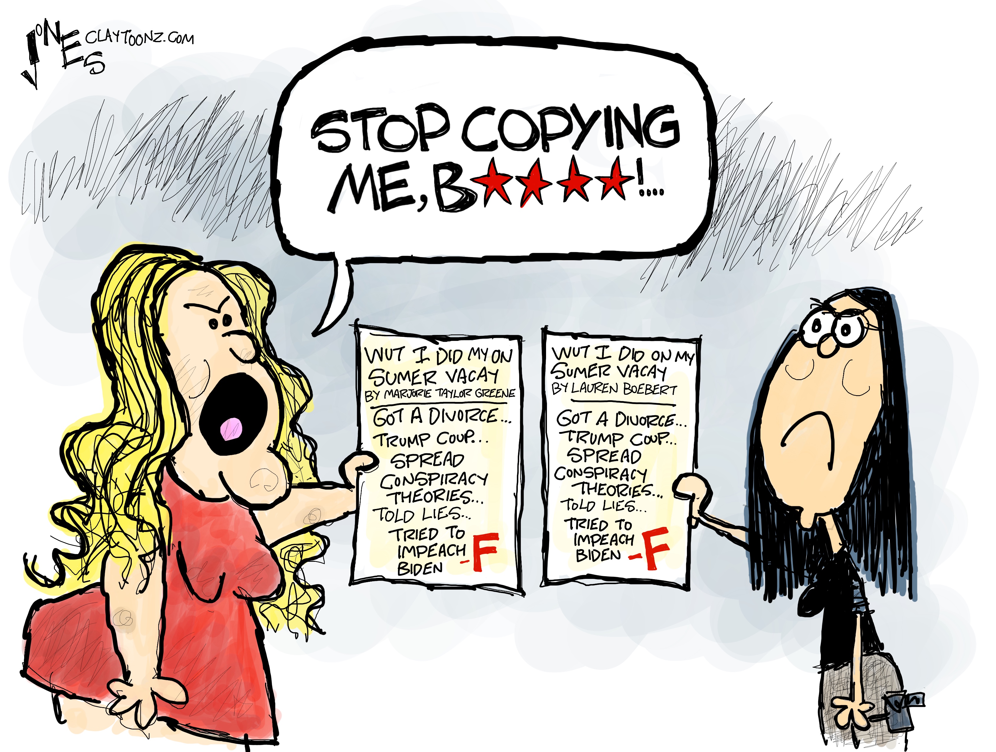 Watching MTG and Bobo bicker over something as ridiculous as impeaching President Biden reminds me of a tiff among cartoonists in 1999.
