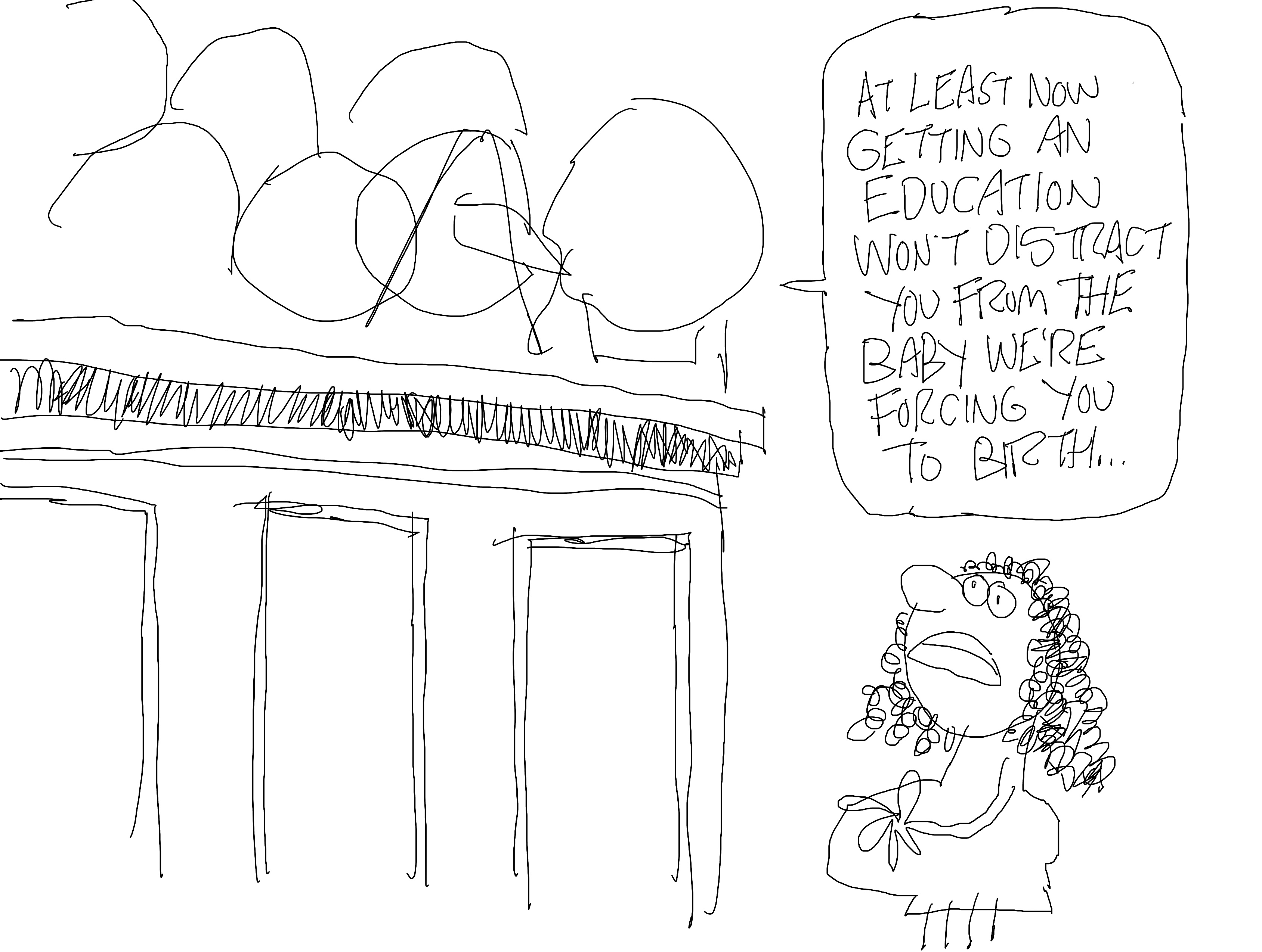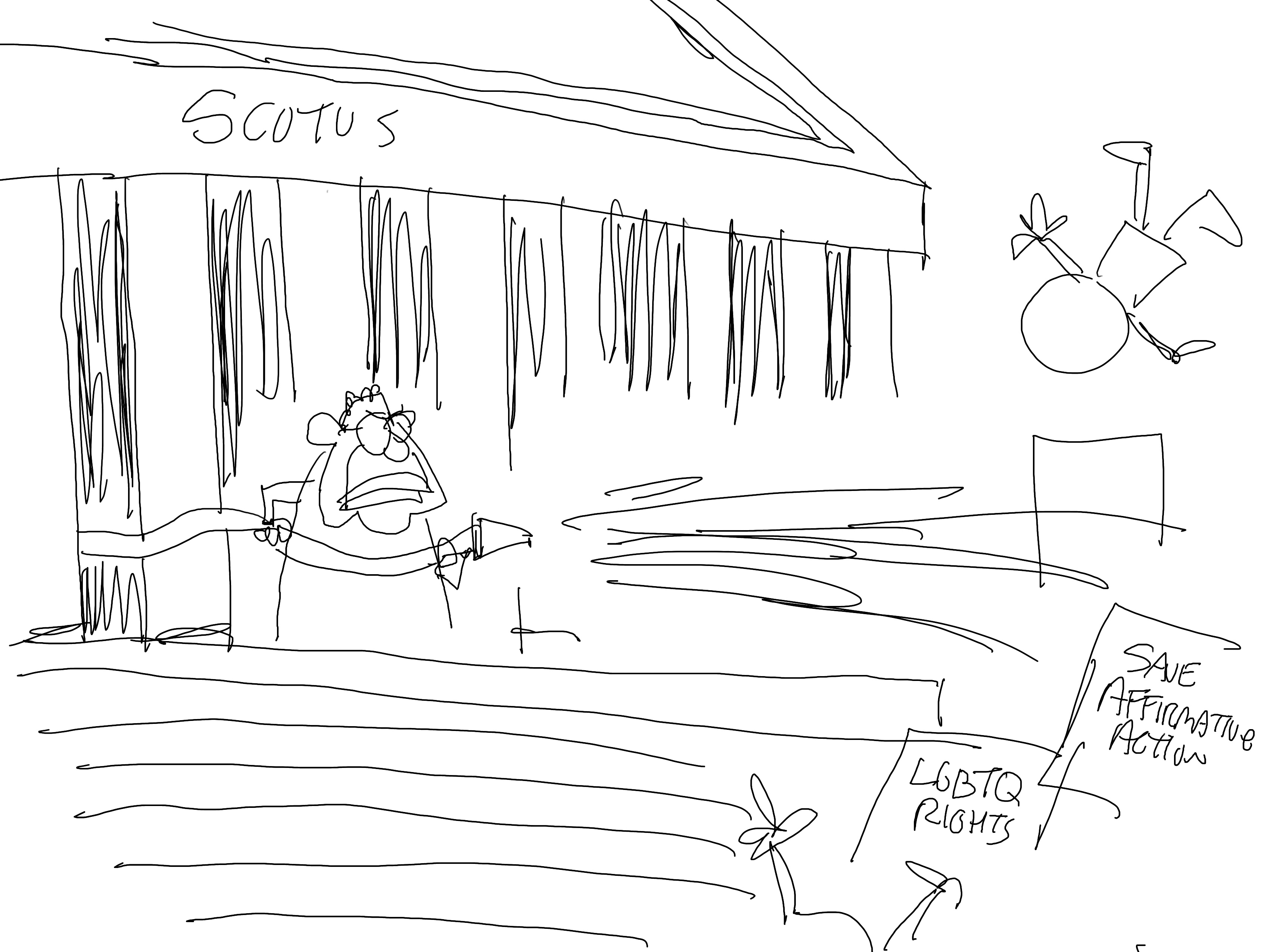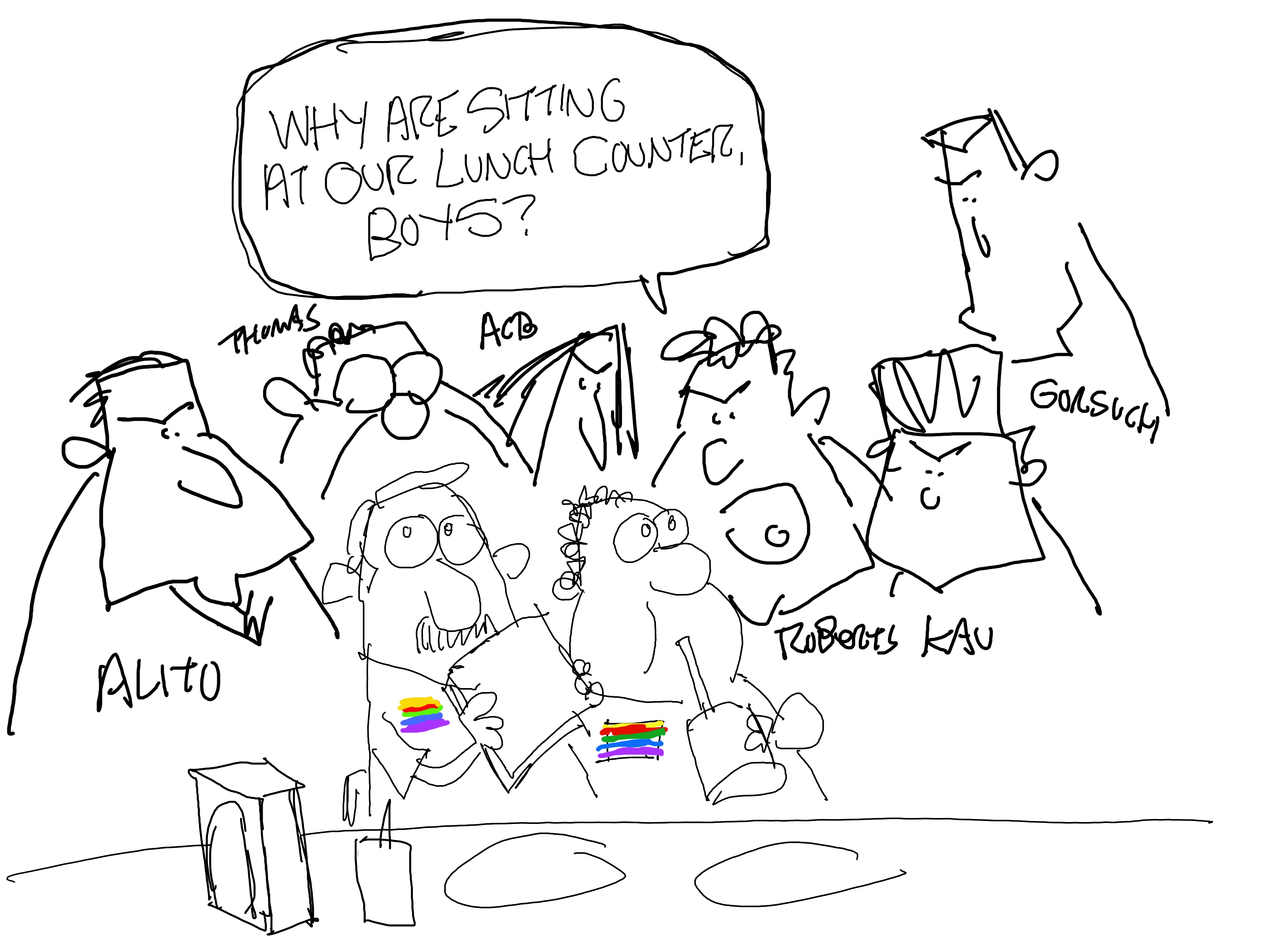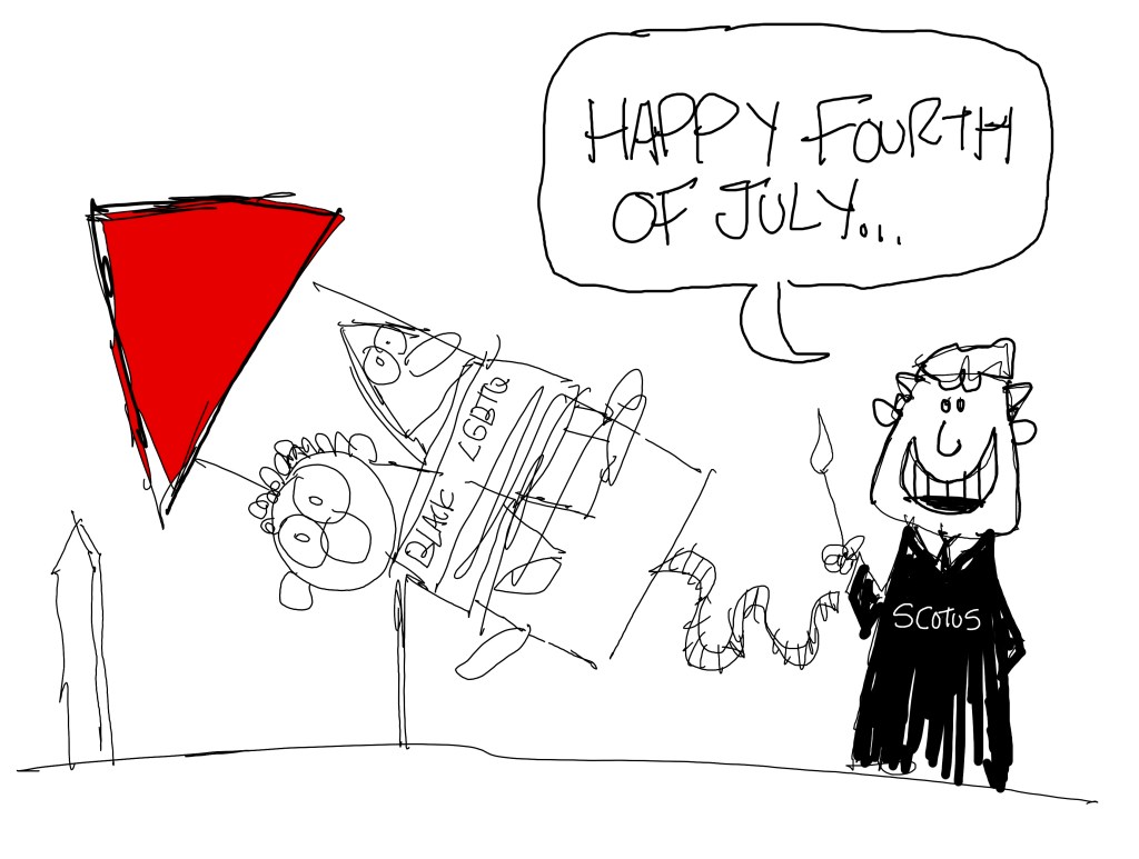 These roughs were drawn Thursday, June 29, and Friday, June 30…I think. The main subject of the week was fucked-up Supreme Court rulings.