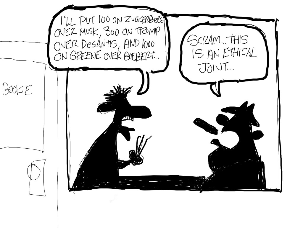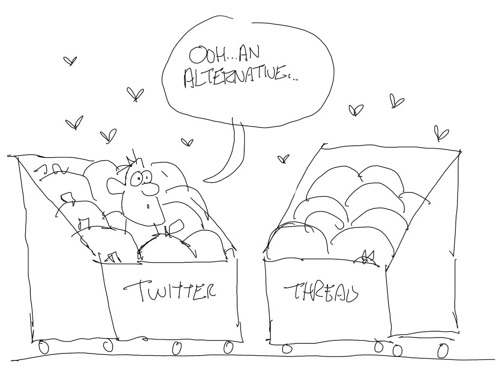 Another meh. And look, tracing cartoonists… It’s NOT hard to draw the Threads logo. Yes, I actually saw a few cartoons where the brand-new Threads logo was copied and pasted.
