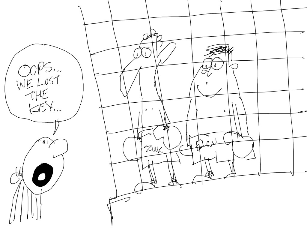 After I drew my other two cage cartoons (one for CNN and one for my clients), a bunch of people commented that the key should be lost. That means this was an obvious idea and I’m glad I didn’t draw it.
