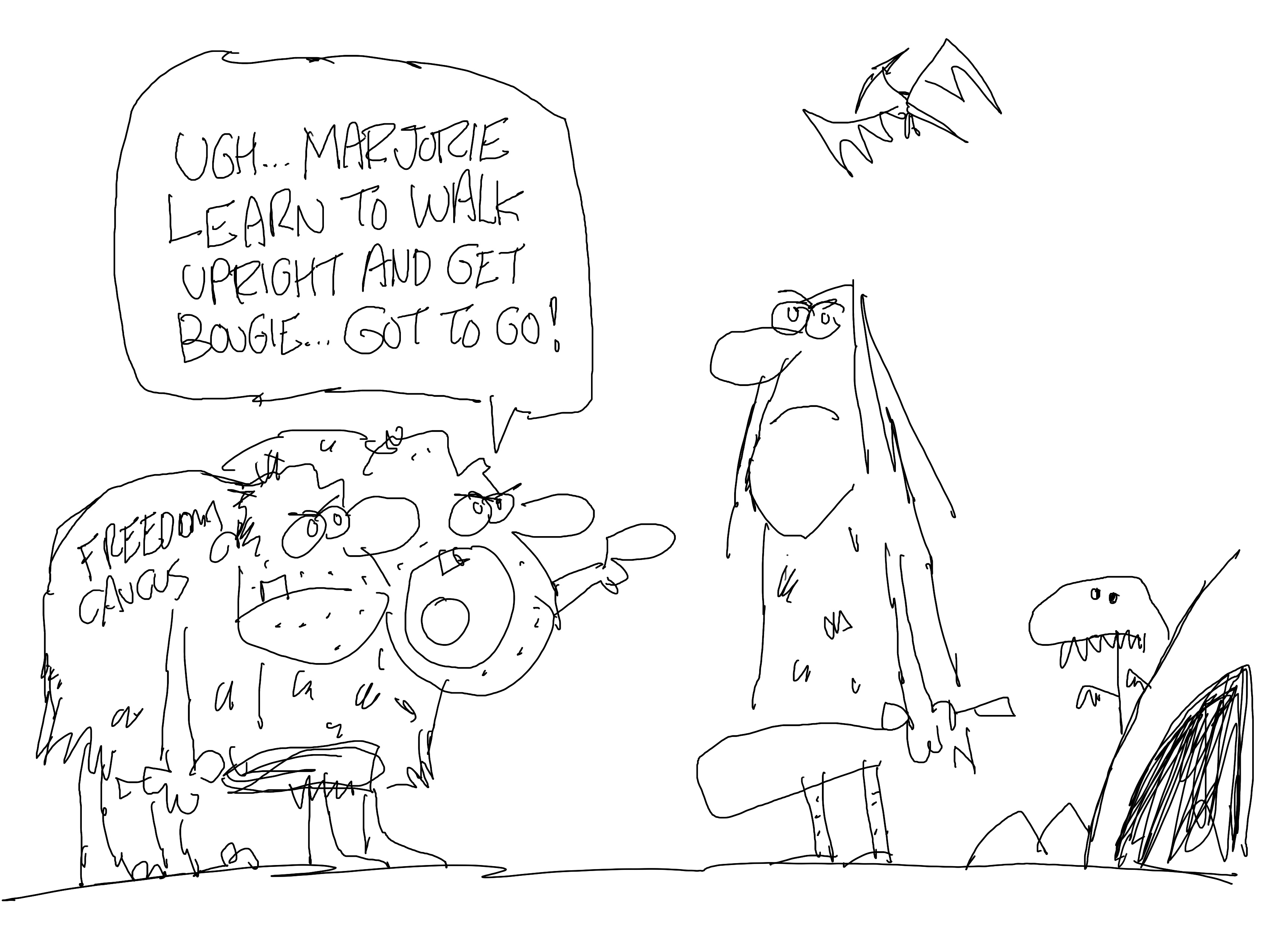 I was excited to draw this cartoon because I was going to get to draw dinosaurs. Fuck yeah, dinosaurs! Speaking of dinosaurs, I watched 65 last night on Netflix. If you like dinosaurs, spaceships, and Adam Driver, you’ll probably like it. In fact, they should have just called it Spaceships and Dinosaurs.