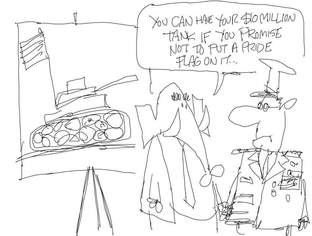 I liked this one and I came close to making it an official cartoon. I did draw one cartoon on the subject of the defense budget and planned on doing another (like this one maybe), but again, time got away from me.