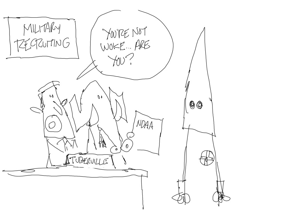 It’s so easy to fall back on Klan imagery to make the point that someone’s racist, so I try to avoid it for that reason…it being easy, not because it gets me in trouble. In fact, I did use it this week and it got me in trouble on TikTok along with getting yelled at by a lot of rednecks. Oh well.