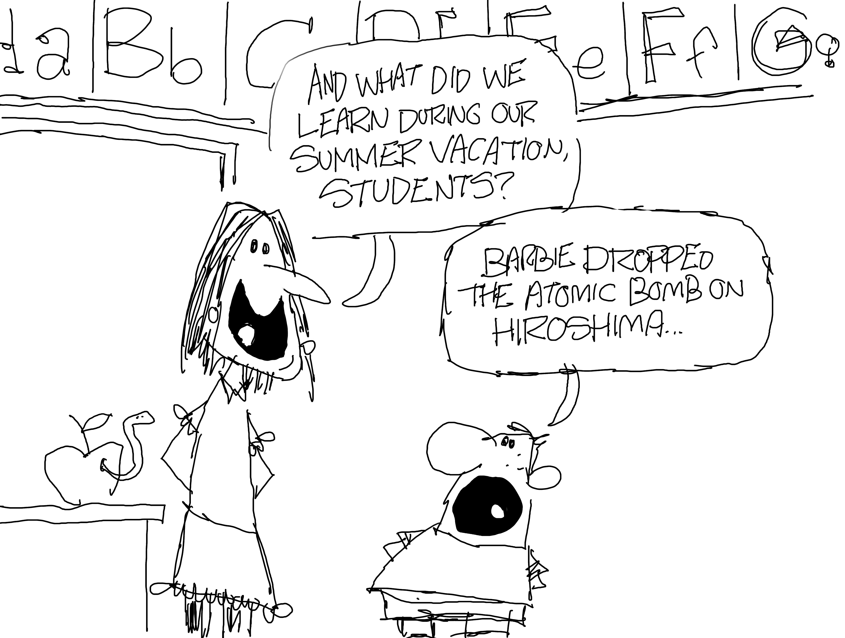 I was told “too soon” regarding Hiroshima. I’m kinda kidding…sort of. I would have drawn this for my clients if it wasn’t for another cartoon on Barbie. I’m Barbied-out at this point.