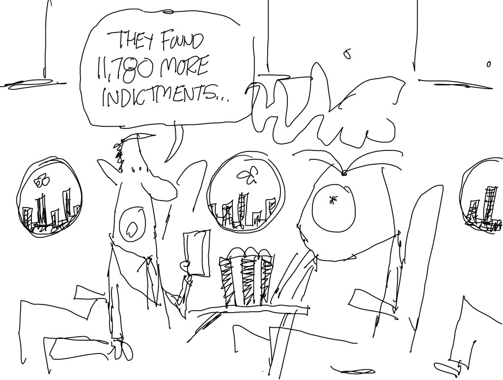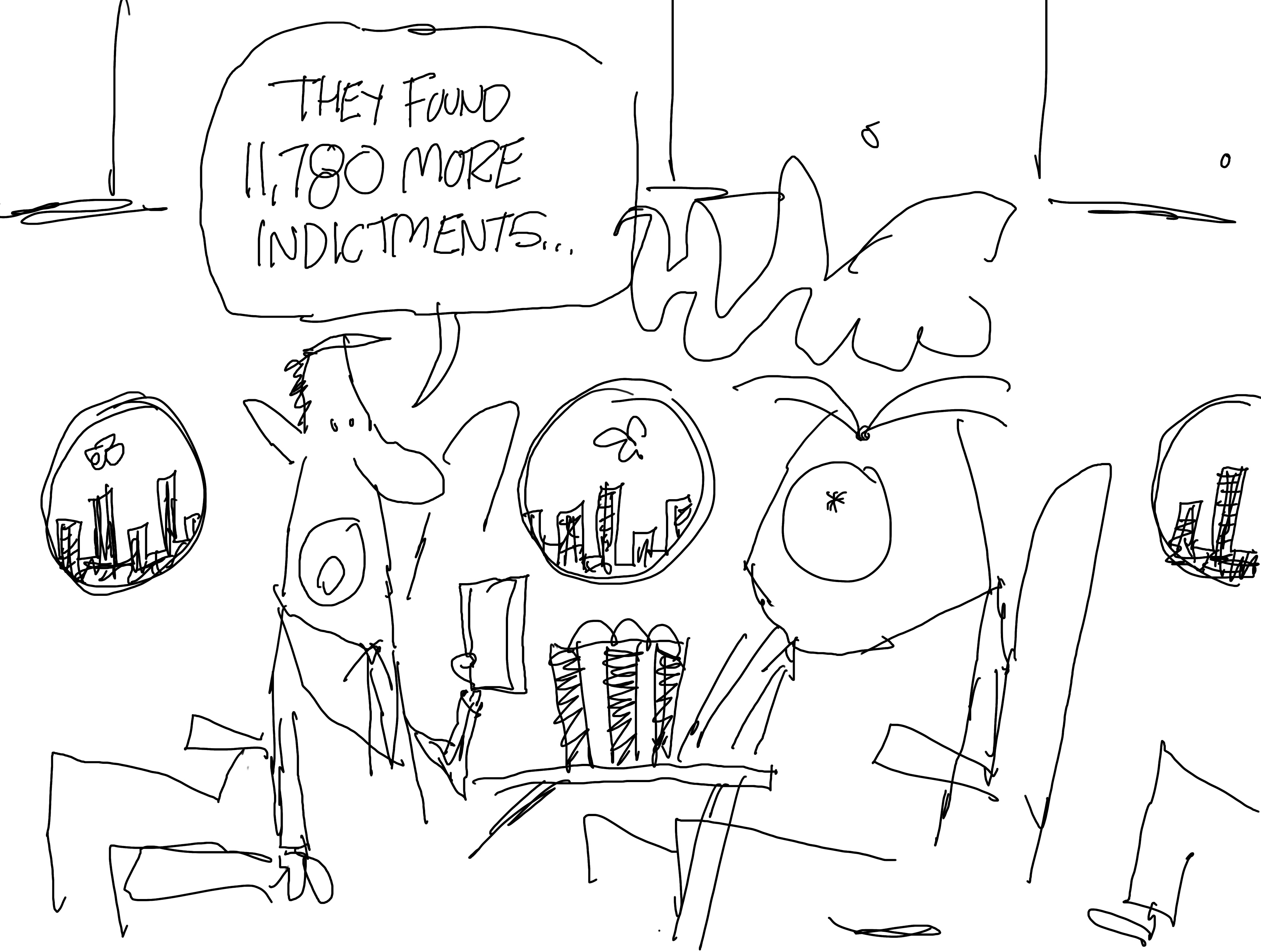 I got this idea while I was in Washington, D.C. covering Trump’s THIRD indictment and arraignment last week. I really do like this and I may come back and draw an official version later. But I need to hold off for a while because I drew two jail scenes last week.