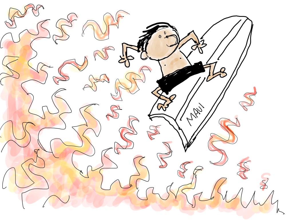 This was the choice for the CNN Opinion newsletter. My editor trusted me on this one and that readers would understand all three of the Hawaiian words. This was NOT my favorite of the Maui cartoons I drew but I still liked it very much.