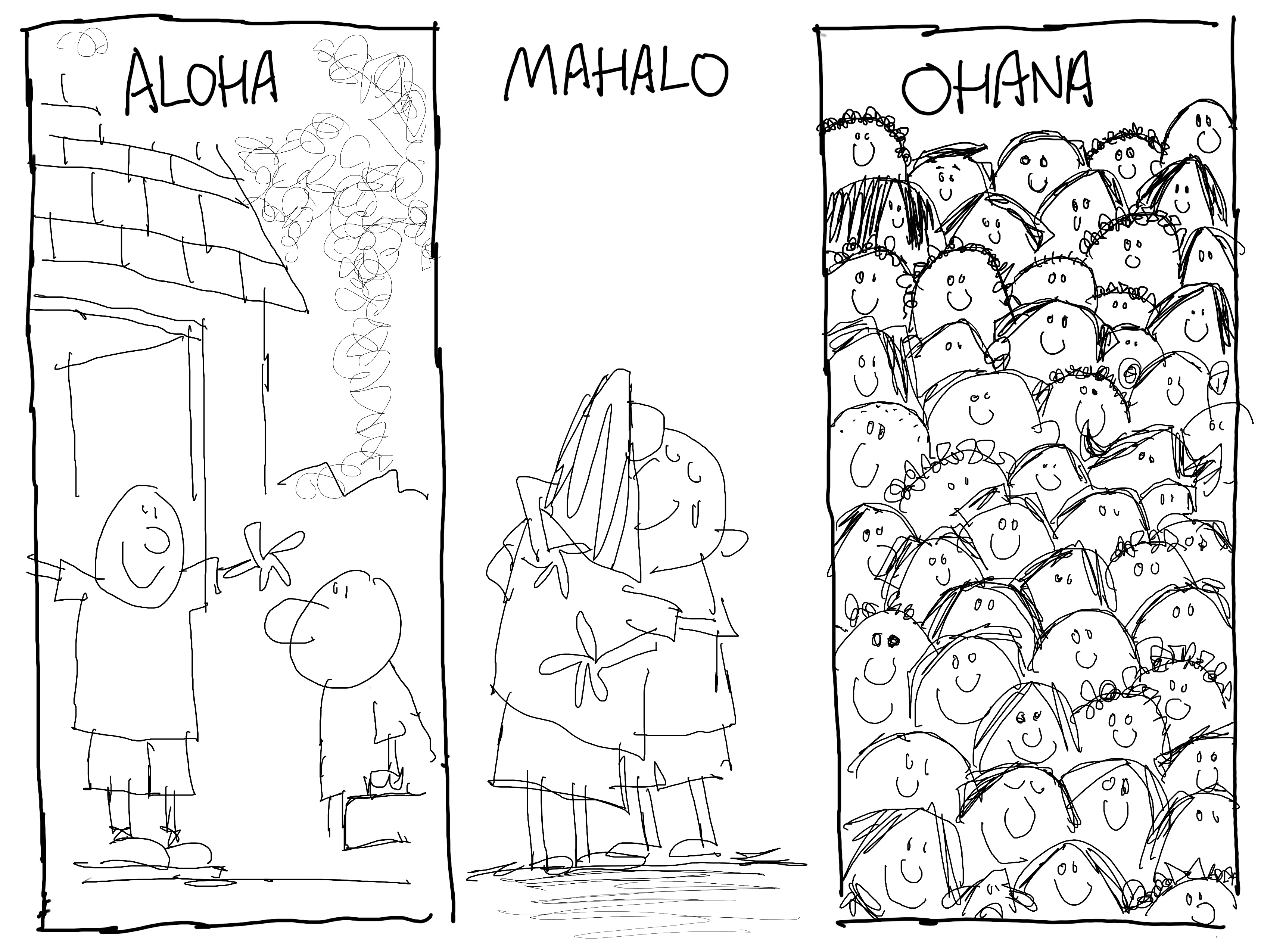 This was the choice for the CNN Opinion newsletter. My editor trusted me on this one and that readers would understand all three of the Hawaiian words. This was NOT my favorite of the Maui cartoons I drew but I still liked it very much.