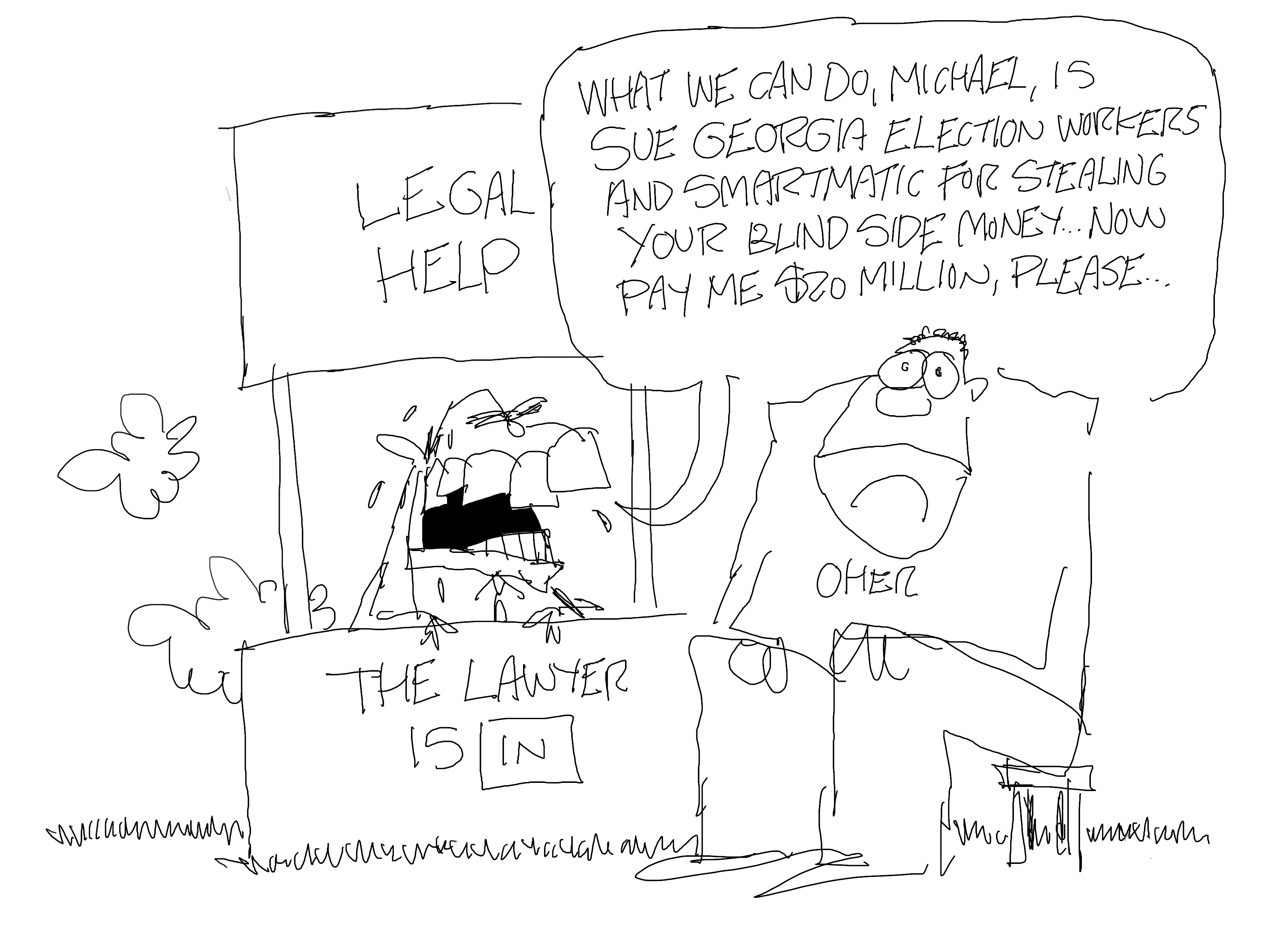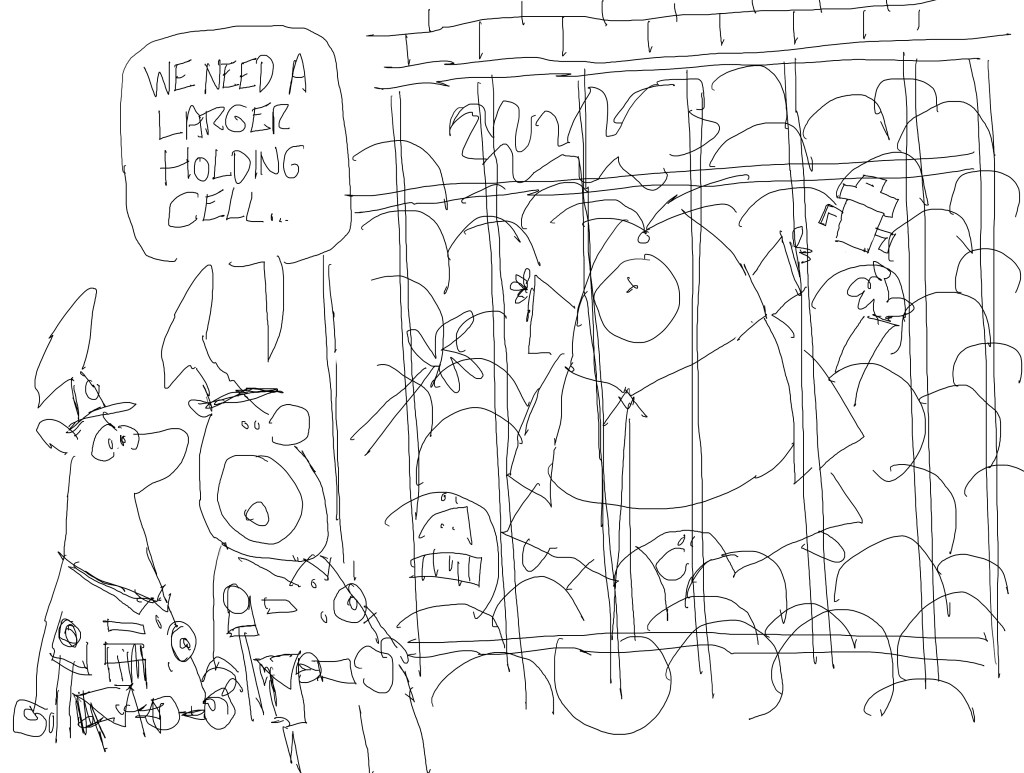 I thought I might be drawing something on Trump’s arrest for the newsletter, but that was not to be. I was throwing arrest cartoons at them until I found out what they wanted me to do.