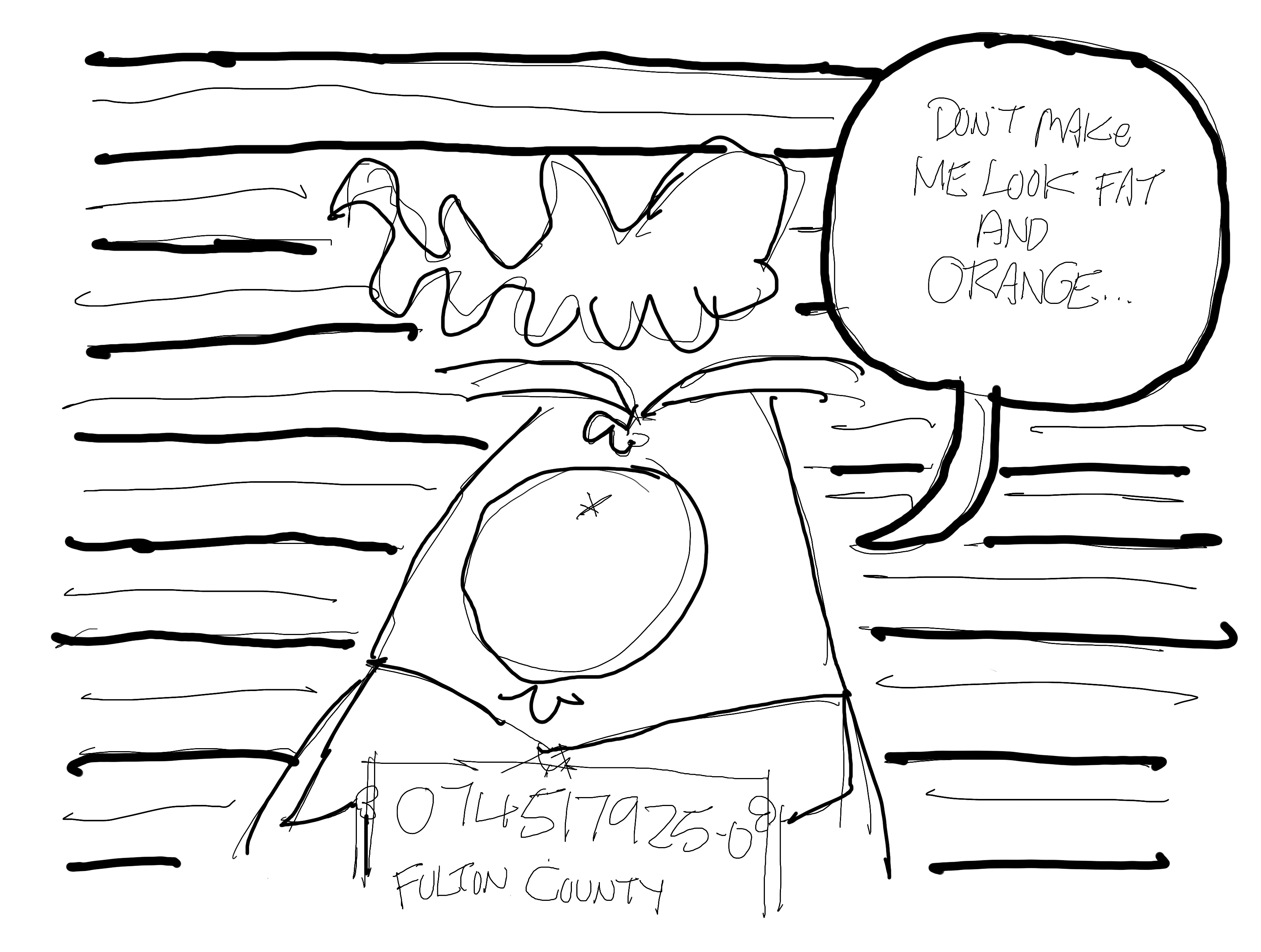 This was drawn and published before his arrest and the actual mugshot was taken. I ended up drawing on the mugshot for this week’s CNN Opinion newsletter. Trump had complained that Fox News always made him look “fat and orange.”