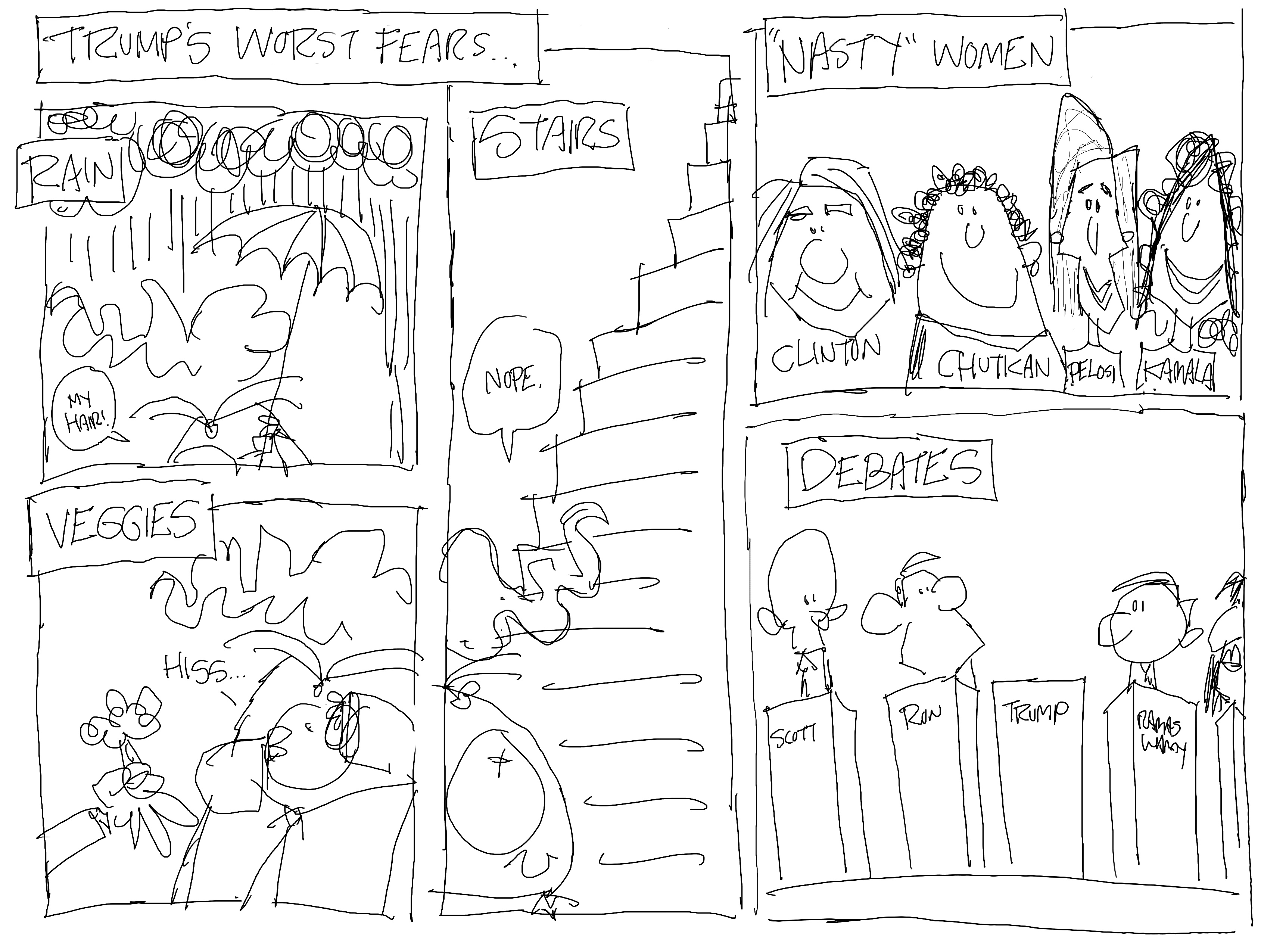 I kinda liked this one and I thought my editor might go for it. However, we did previously use Andrew Johnson, Franklin Pierce, and James Buchanan in a cartoon for the CNN Opinion newsletter. Sometimes it’s fun to draw dead presidents.