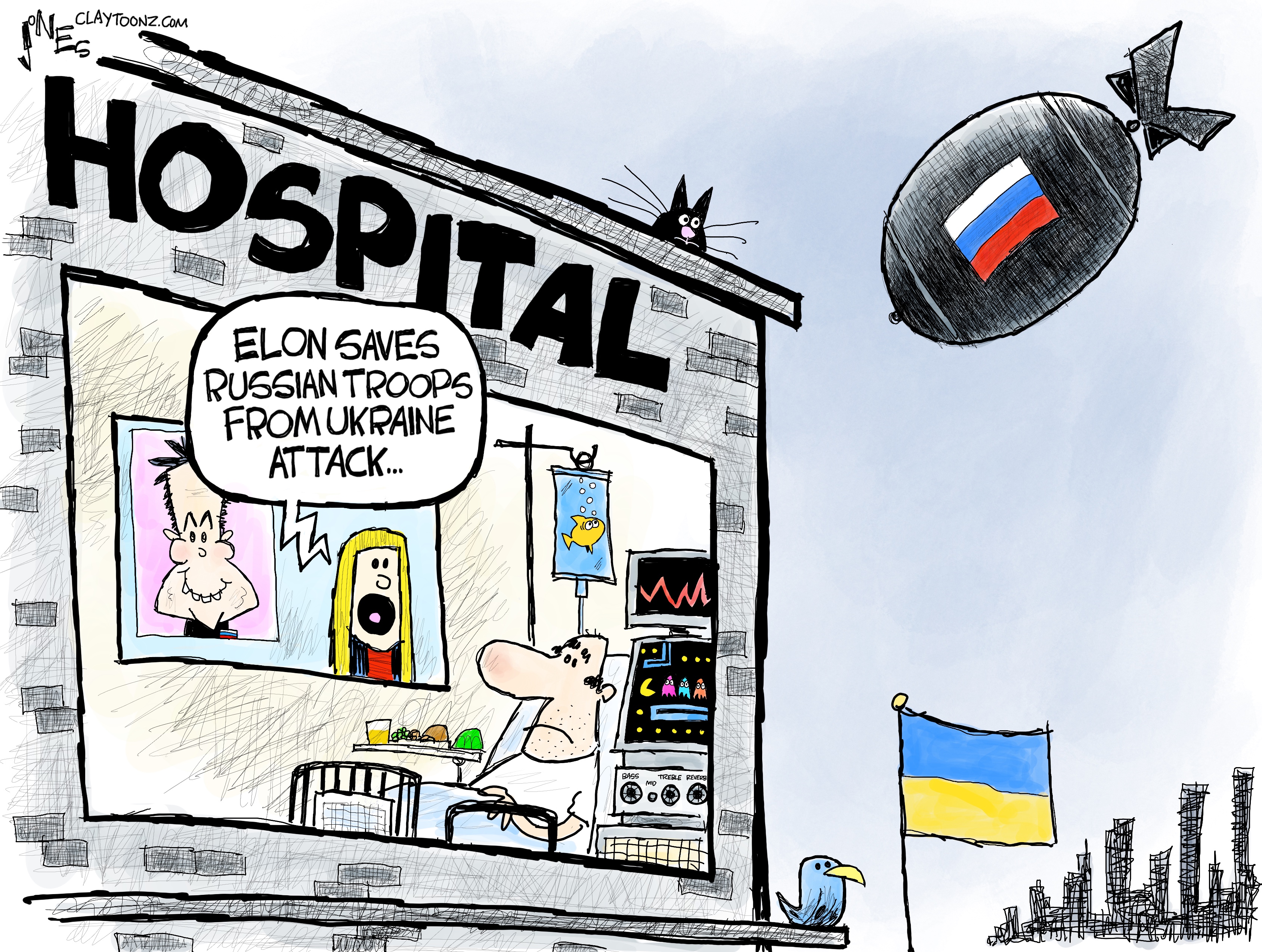 Elon is preventing Ukraine from attacking military targets and ignoring that Russia has attacked civilian targets, like hospitals, apartments, elementary schools, daycare centers, playgrounds, etc, etc. Russia is not the good guy in this war. Elon has expressed no concern over Putin murdering children. Intead, he’s proposed that Putin be rewarded.
