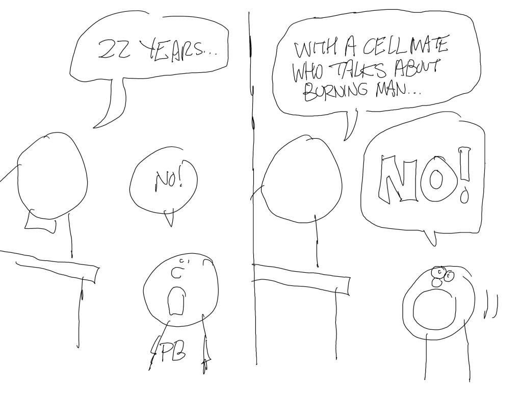 I was over Burning Man jokes last week before I could start a Burning Man cartoon. There were so so oh so many stuck-in-the-mud metaphors. Some readers actually tweeted anticipation to see what I would do with Burning Man, but I can’t let that pressure me. I got three of those this week on other subjects. It’s a huge compliment. I still can’t fully accept that I have fans or that people are waiting on my next cartoon.