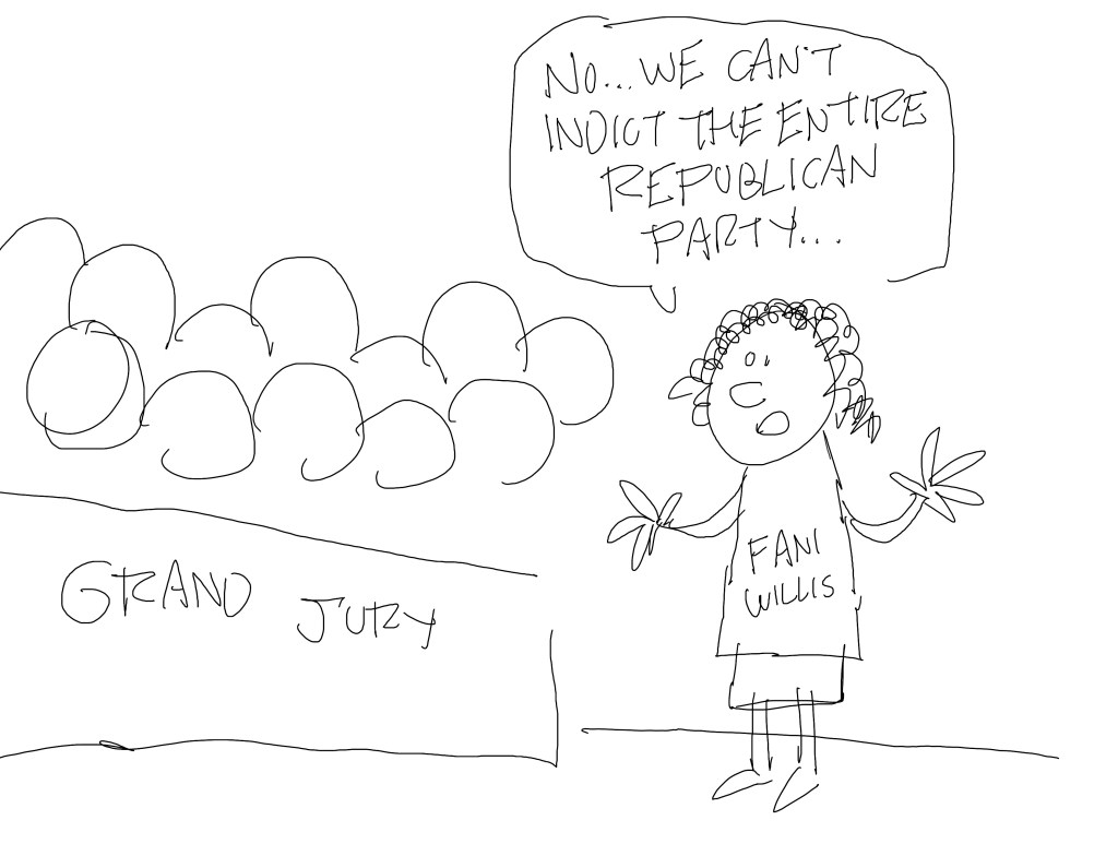I put this aside for something else and then proofer Laura said, “I like this one better.” Dammit, she was right. I meant to go back and finish this. What’s the harm in two cartoons on this subject? None! But, it got away from me. I do like the way the Biden caricature turned out.