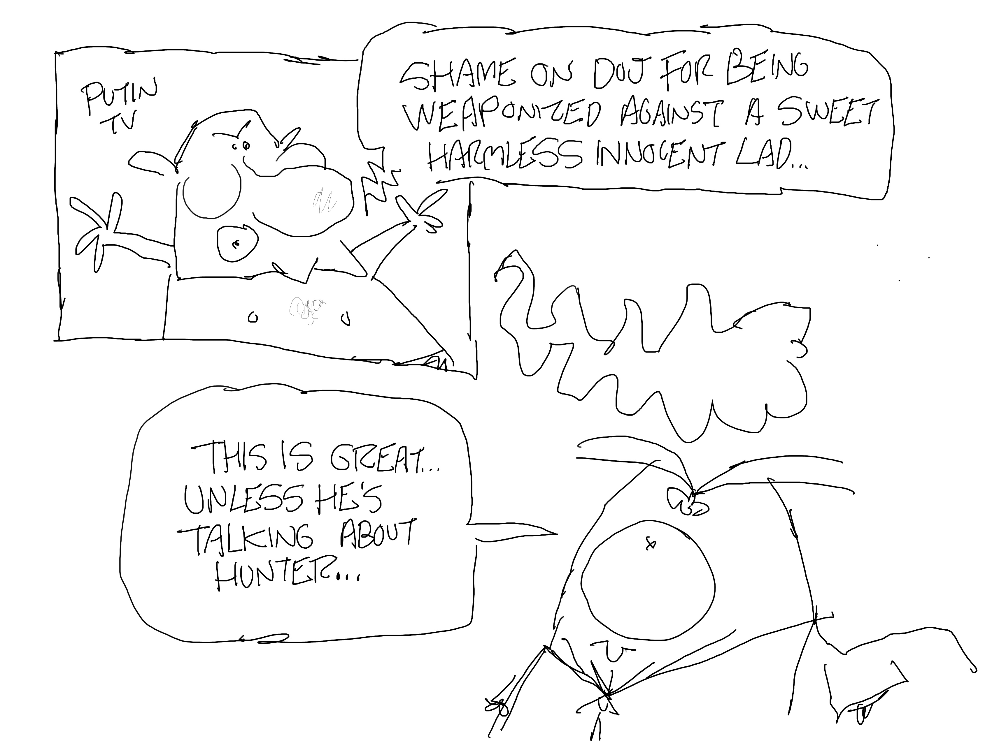 I like this one and meant to do it but other things got in the way. I may still do something on Putin advancing the “weaponized DOJ” bullshit conspiracy theory.