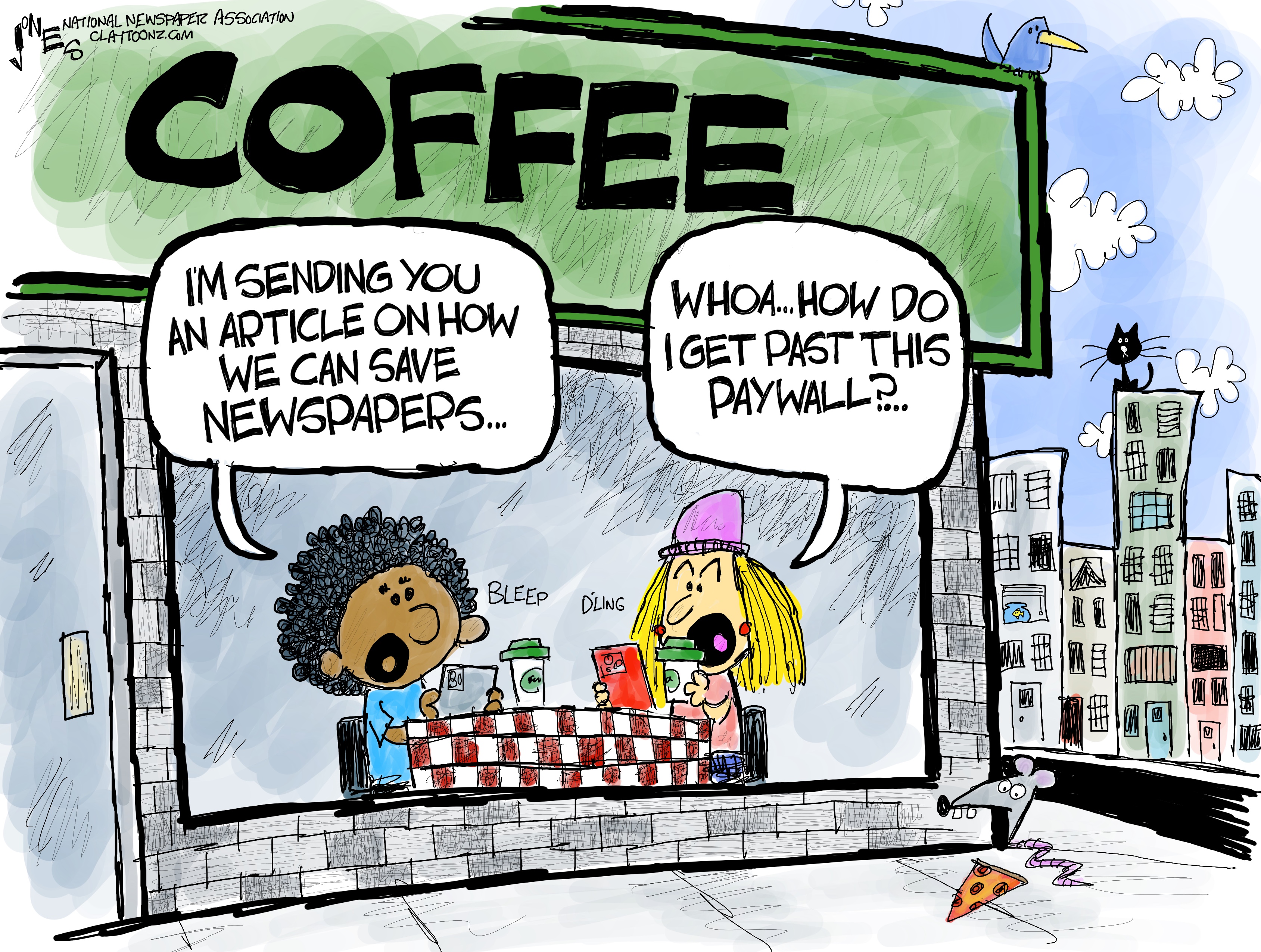The National Newspaper Association asked a few cartoonists to draw a cartoon for National Newspaper Week, which is this week, and I’m honored to be one of them. Technically, the Arkansas Press Association is in charge of the campaign this year and its executive director, Ashley Kemp Wimberly was gracious enough to ask me to participate, so props to her.
