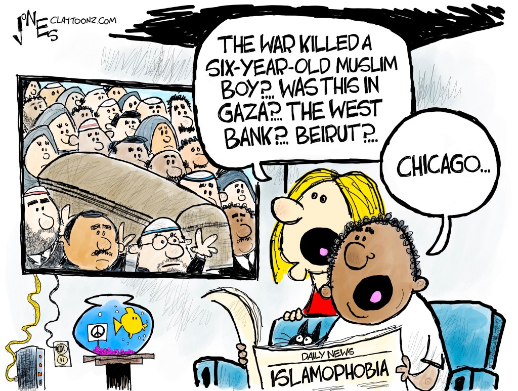 Last week, six-year-old Wadea Al-Fayoume was murdered by his landlord who stabbed him 21 times, blaming all Muslims for the war between Israel and Hamas. He also stabbed Wadea’s mother who survived. The 71-year-old landlord had previously bought the boy toys, let him swim in a makeshift pool, and even built him a tree house, but then he was radicalized by right-wing talk radio. The attack didn’t occur in Gaza, the West Bank, Israel, or Lebanon. It happened in unincorporated Plainfield Township, outside Chicago.
