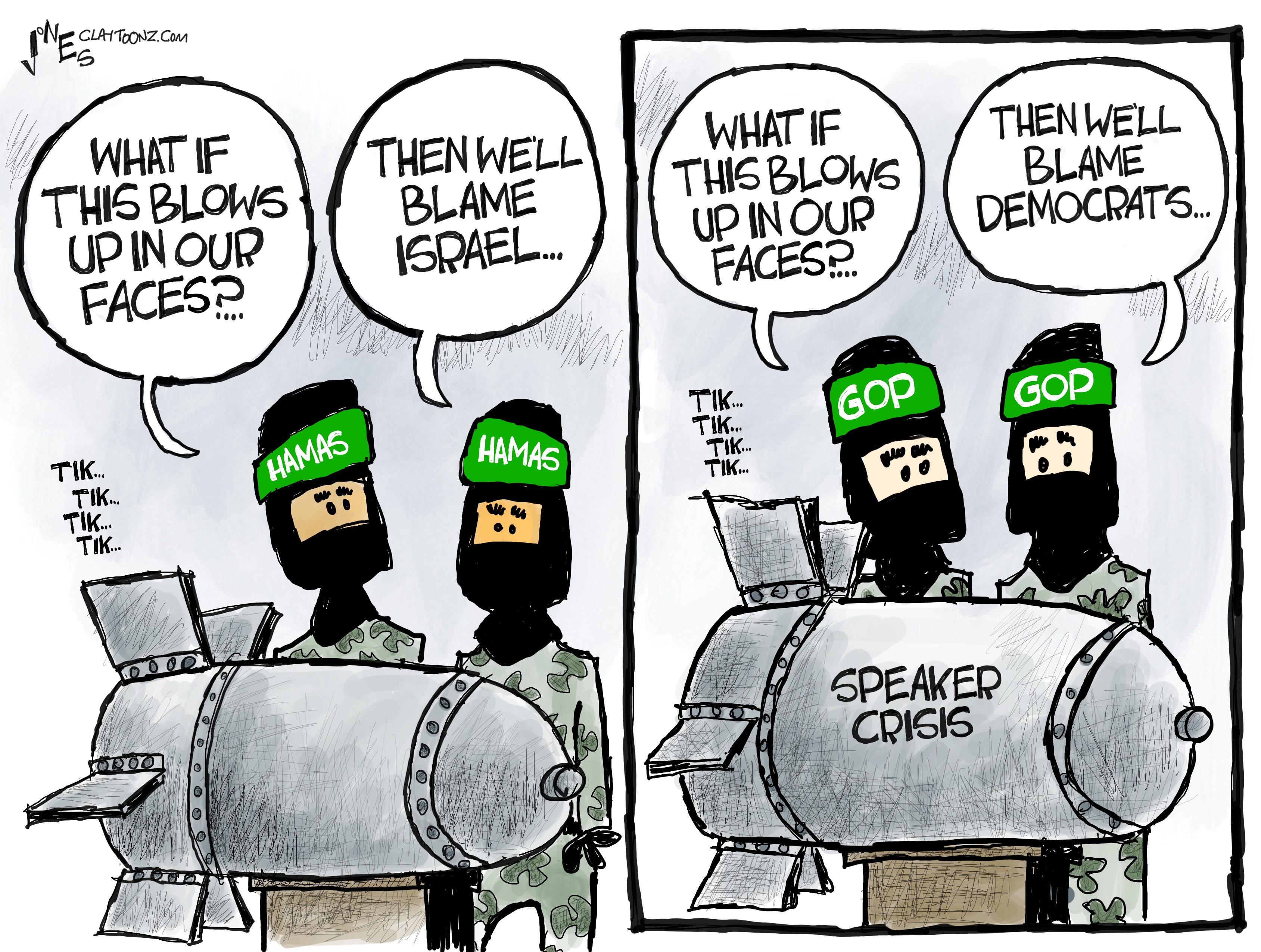 The bomb has gone off in Republicans’ faces and the only people who should be blamed are Republicans. It was Republicans who couldn’t pull their majority together to save McCarthy. It was Republicans who couldn’t pull their majority together to elect a Speaker over the past two weeks. It’s Republicans who can’t legislate or manage the House of Representatives. It’s Republicans who are failures. It’s Republicans who are about to make their presidential nominee a former president (sic) whose entire administration was a failure, lost the last election, and is currently facing 91 felony charges.