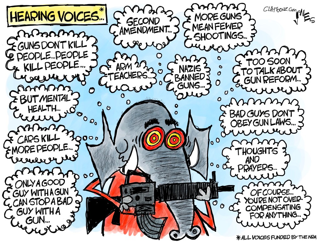 After hearing the man responsible for 18 murders in a mass shooting rampage was hearing voices in his head, I wonder what voices NRA-funded Republicans are hearing in their heads. Let’s address and debunk these voices.
