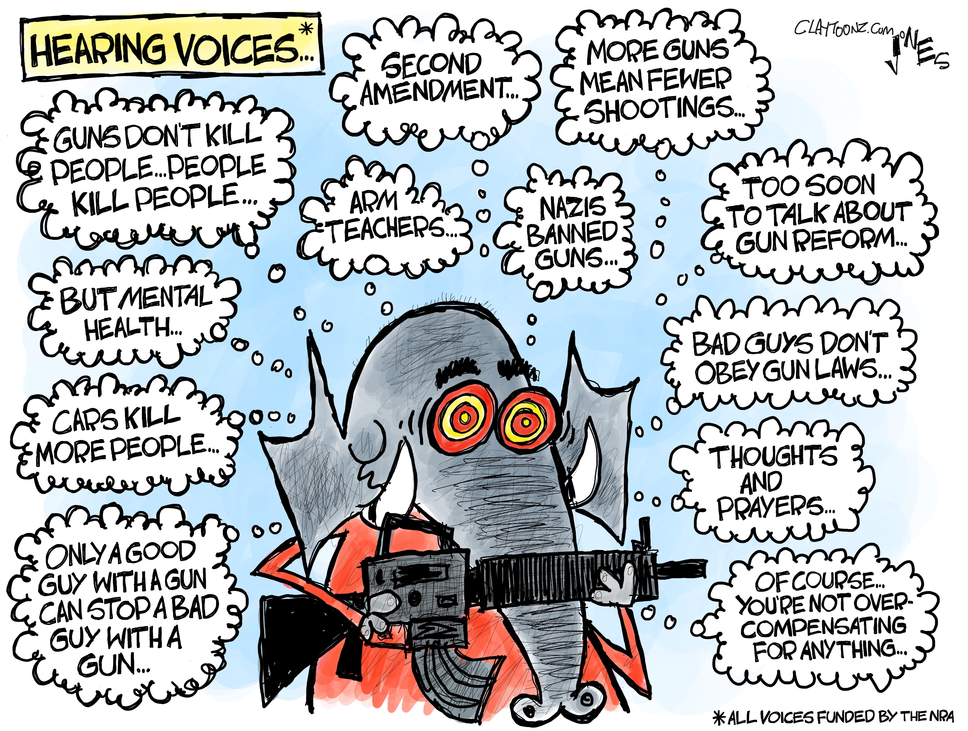After hearing the man responsible for 18 murders in a mass shooting rampage was hearing voices in his head, I wonder what voices NRA-funded Republicans are hearing in their heads. Let’s address and debunk these voices.