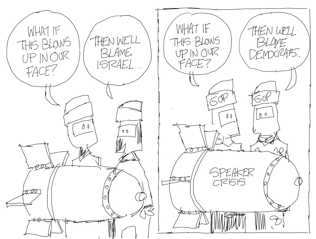 I did three other cartoons on Trump’s flippers. After I did a wordy cartoon on Jim Gym Jordan, I felt more comfortable letting this one slip away.
