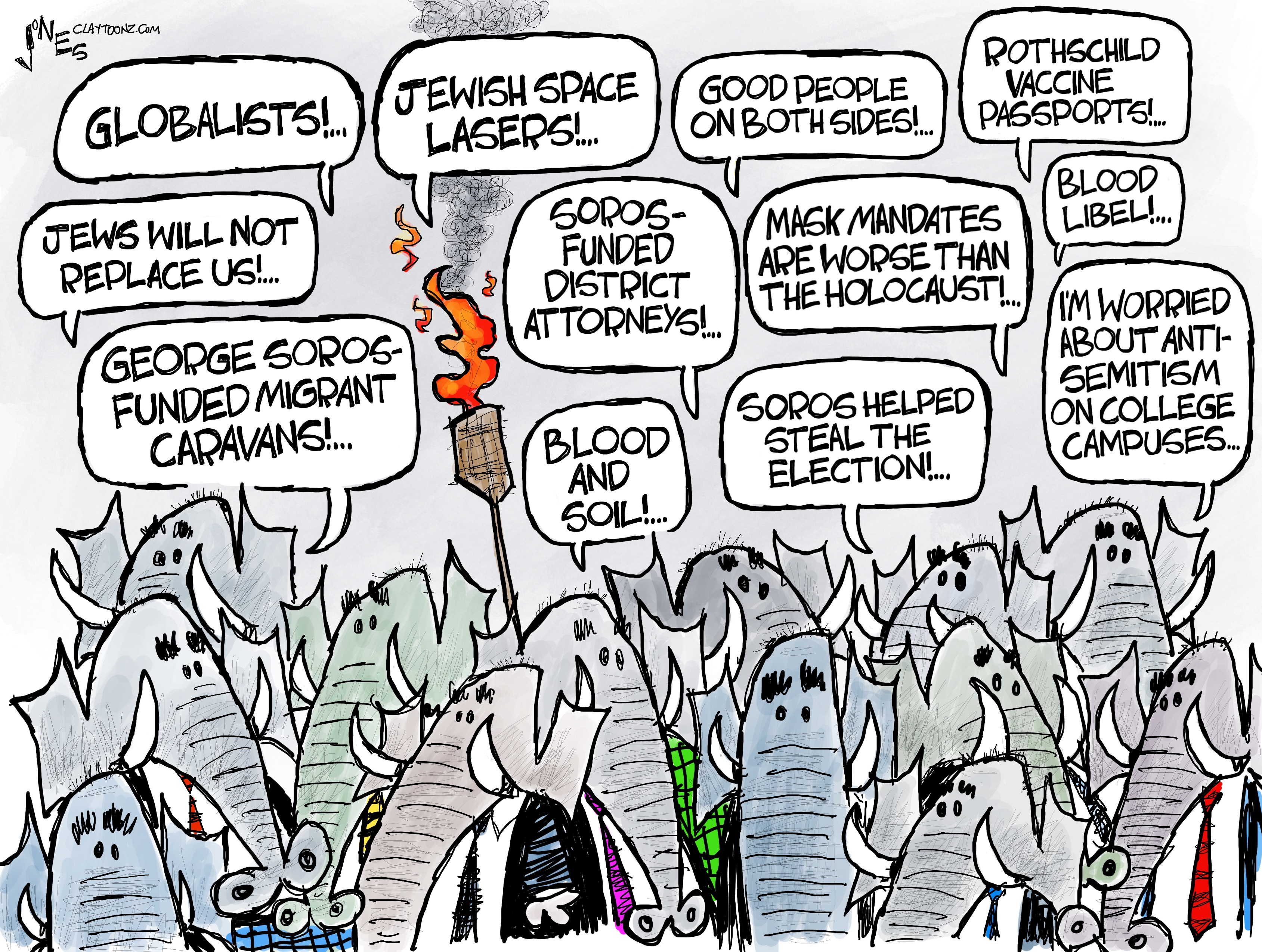 If anyone’s going to fight antisemitism, it’s not going to be Republicans, the party of bigots, the party that’s supported by Proud Boys, the party that’s supported by the Ku Klux Klan, the party that’s supported by Nazis, and the party that’s now the racist MAGA movement. The GOP is the homophobic party gaslighting about trans teens, gay education in schools, and drag queens. The GOP is the racist party working to suppress votes from minorities while screaming about immigrants. The GOP is the Islamophobic party that backed Trump’s Muslim ban. And the GOP is the party always screaming about globalists.