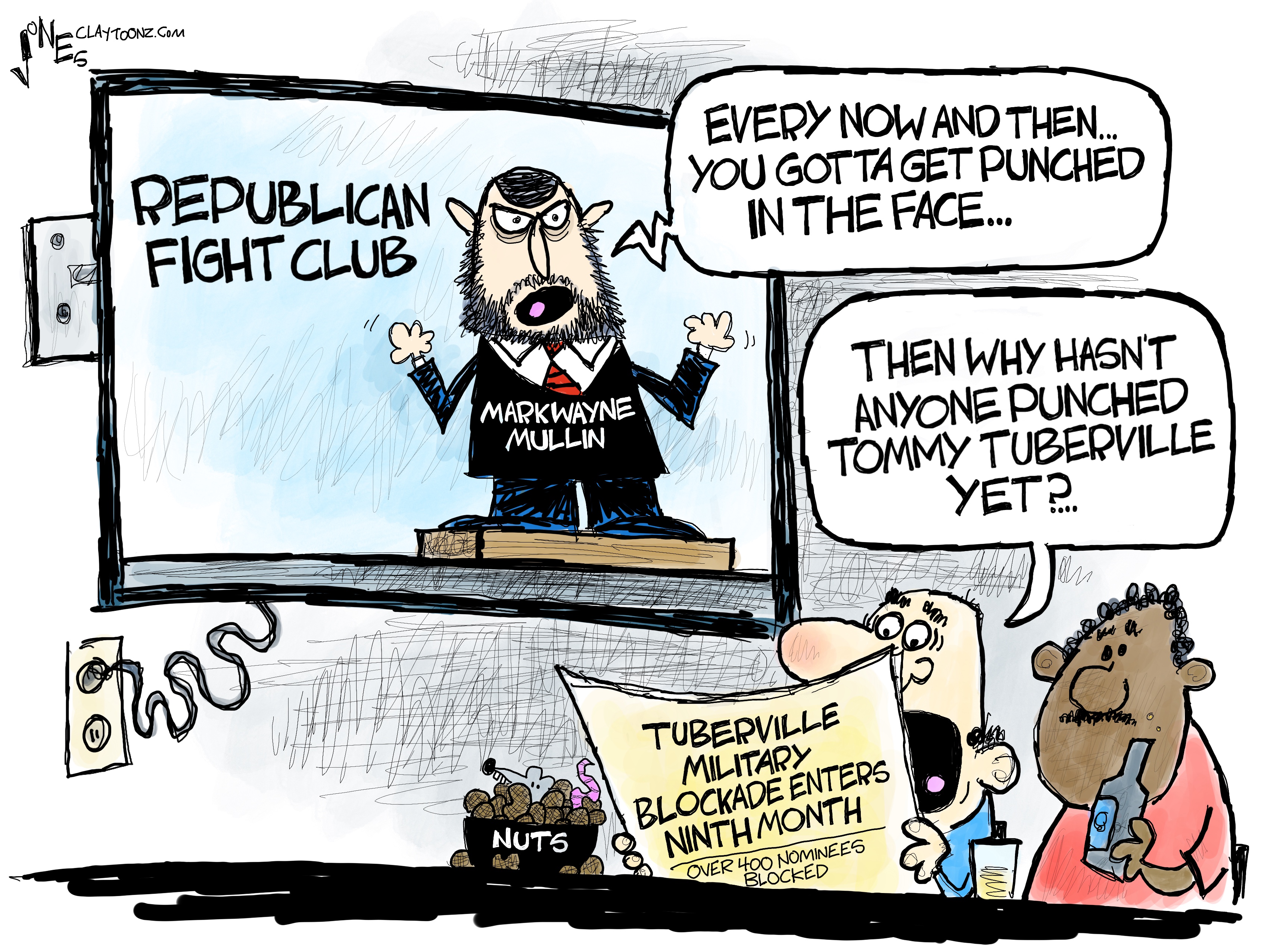 Tip Jar: If you want to support the cartoonist, please send a donation through PayPal to clayjonz@gmail.com. You can also snail it to P.O. Box 3721, Fredericksburg, VA 22402.