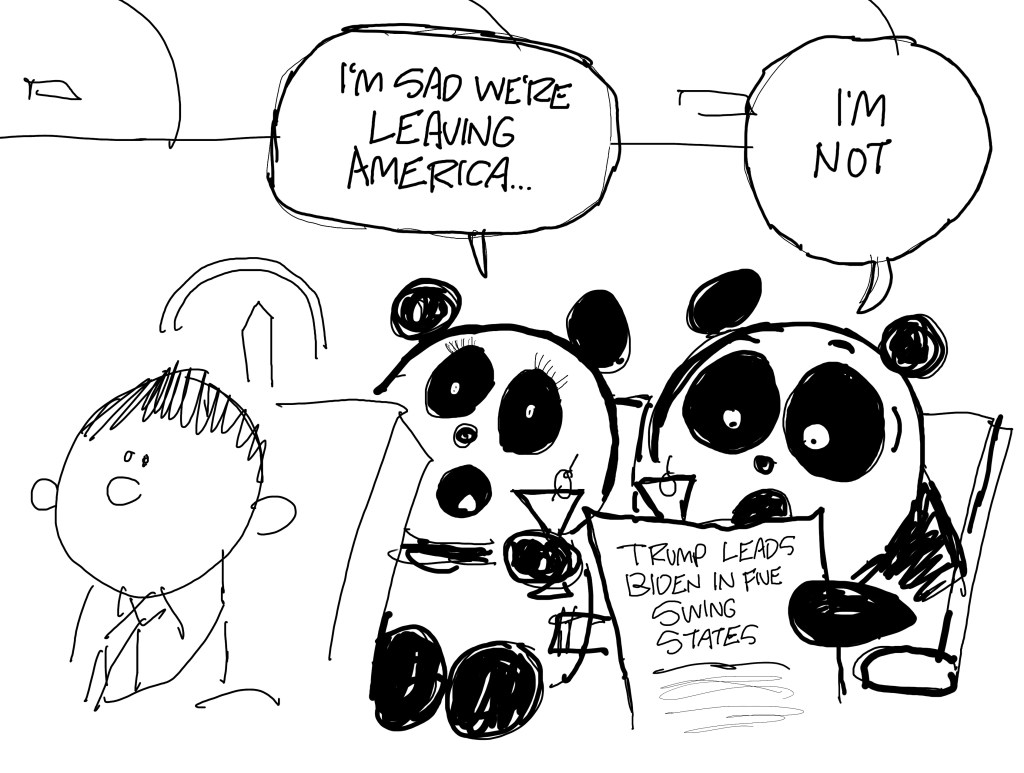 I gave CNN first dibs on panda cartoons which meant this cartoon went to my syndication clients and it’s kind of a sequel to the first one. I didn’t really care which cartoon went to whom because I liked both equally.