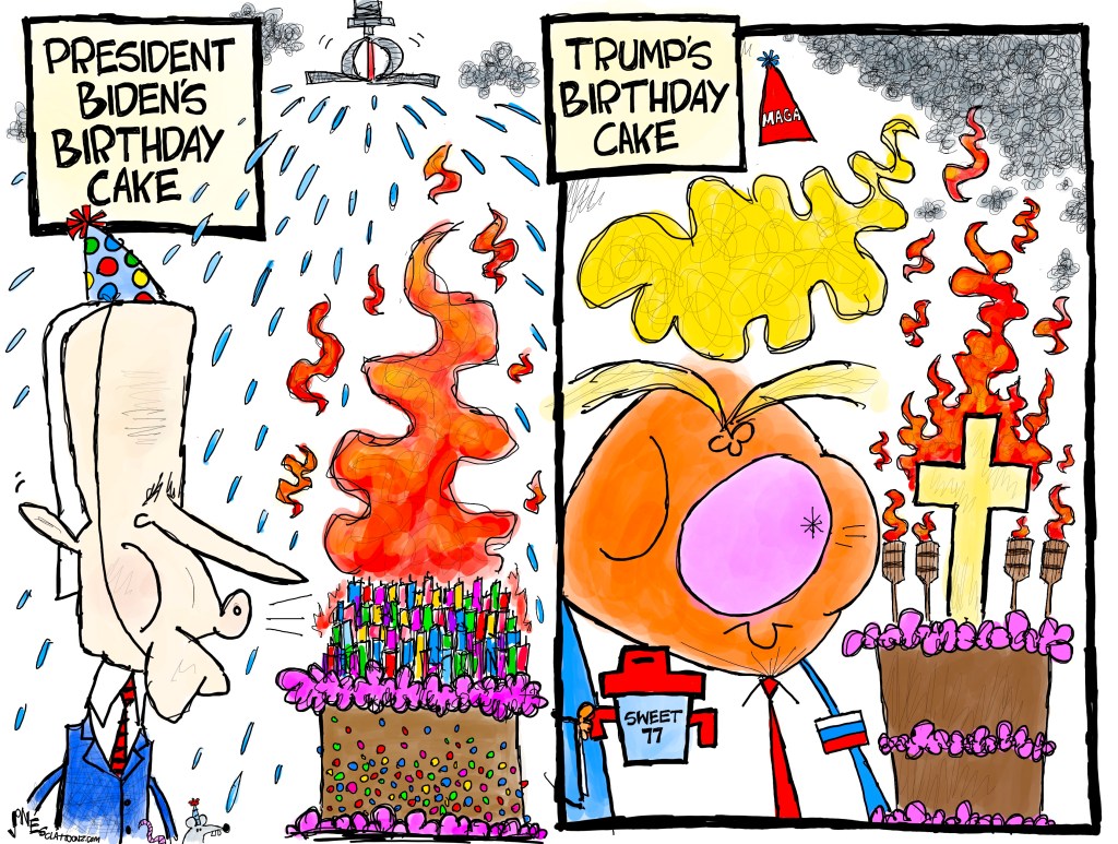 Donald Trump doesn’t seem to realize he too is old and neither does his supporters. Just how brainwashed is a cultist to believe age doesn’t affect his Dear Leader? That’s a lot of Kool-Aid. A lot of Trumpers are using Biden’s birthday cake as a disqualifier for the presidency because we can’t have a presidential birthday cake that’s a fire hazard, as though three candles less for Trump is safer.