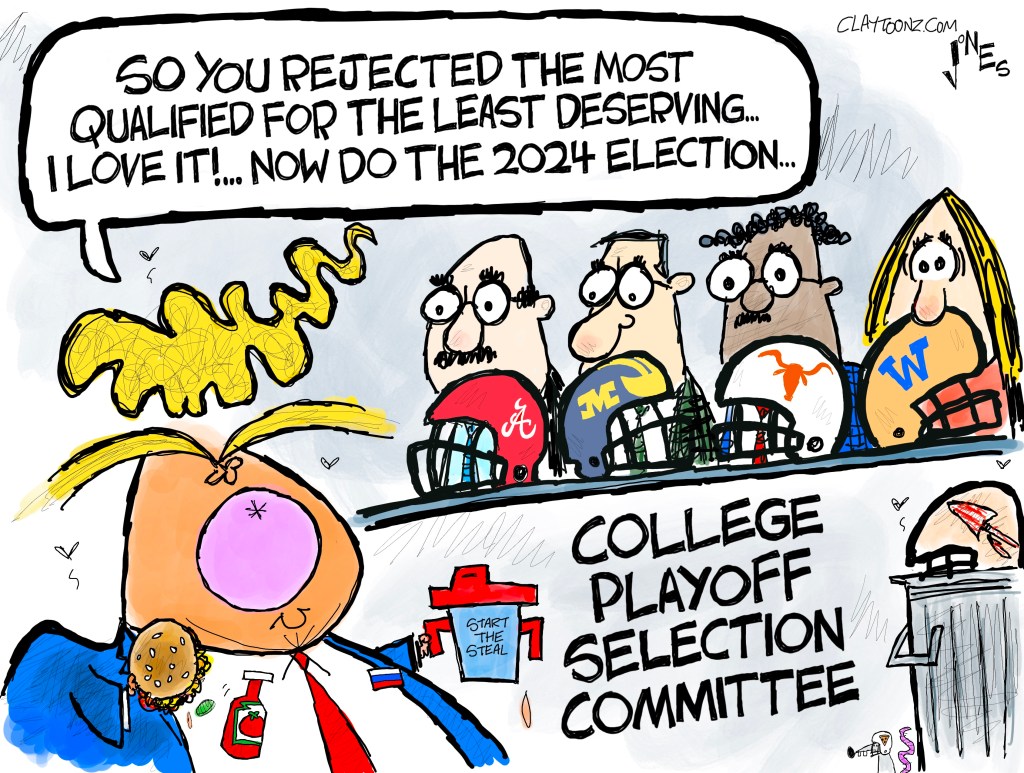 OK…maybe my analogies here suck, but my take is that Donald Trump is going to try to hose us the way the College Football Selection Committee burned Florida State. Donald Trump does not believe in democracy and will take the White House by cheating. It’s how he took it in 2016 and how he tried to steal it in 2020. Maybe FSU should send white nationalist terrorists to the committee’s headquarters to overturn their decision.
