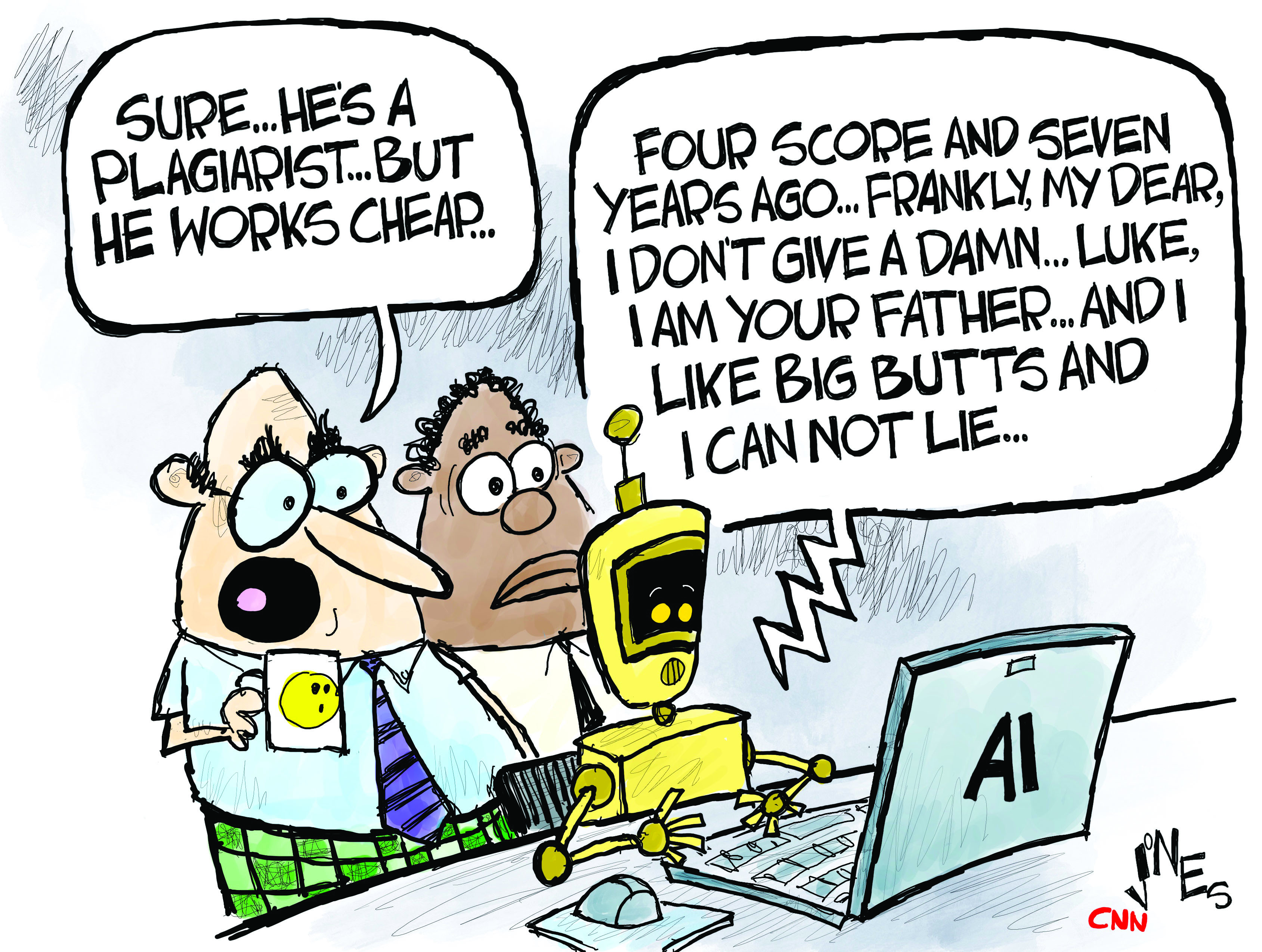 I thought I had the week off from CNN until I got an email Friday morning. This week’s edition is the annual Year in Culture edition and I don’t think I drew a cartoon for it the past couple of years, but that changed this year. I was happy to draw a cartoon for it and yes, AI was a big part of culture in 2023 and will probably only be more so in 2024.
