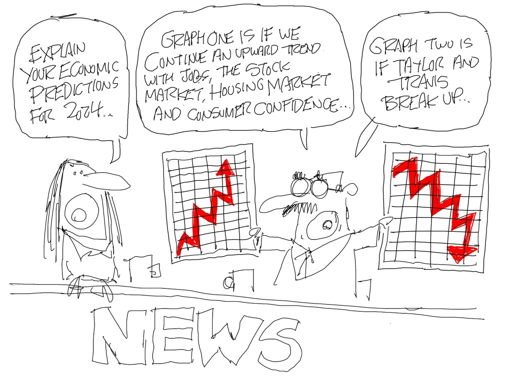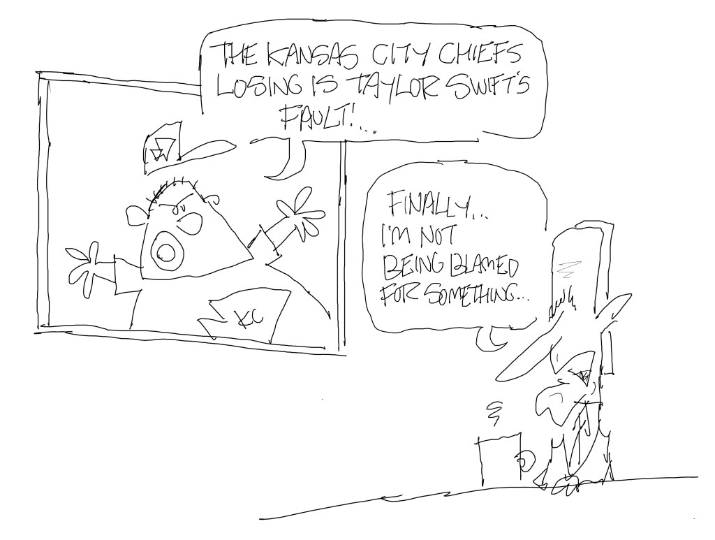 This was drawn on December 28 but I didn’t give it any strong consideration. I am seeing a lot of people not just expressing anger that Taylor goes to football games, but also blaming her for the team’s losses. I personally think that’s insane.