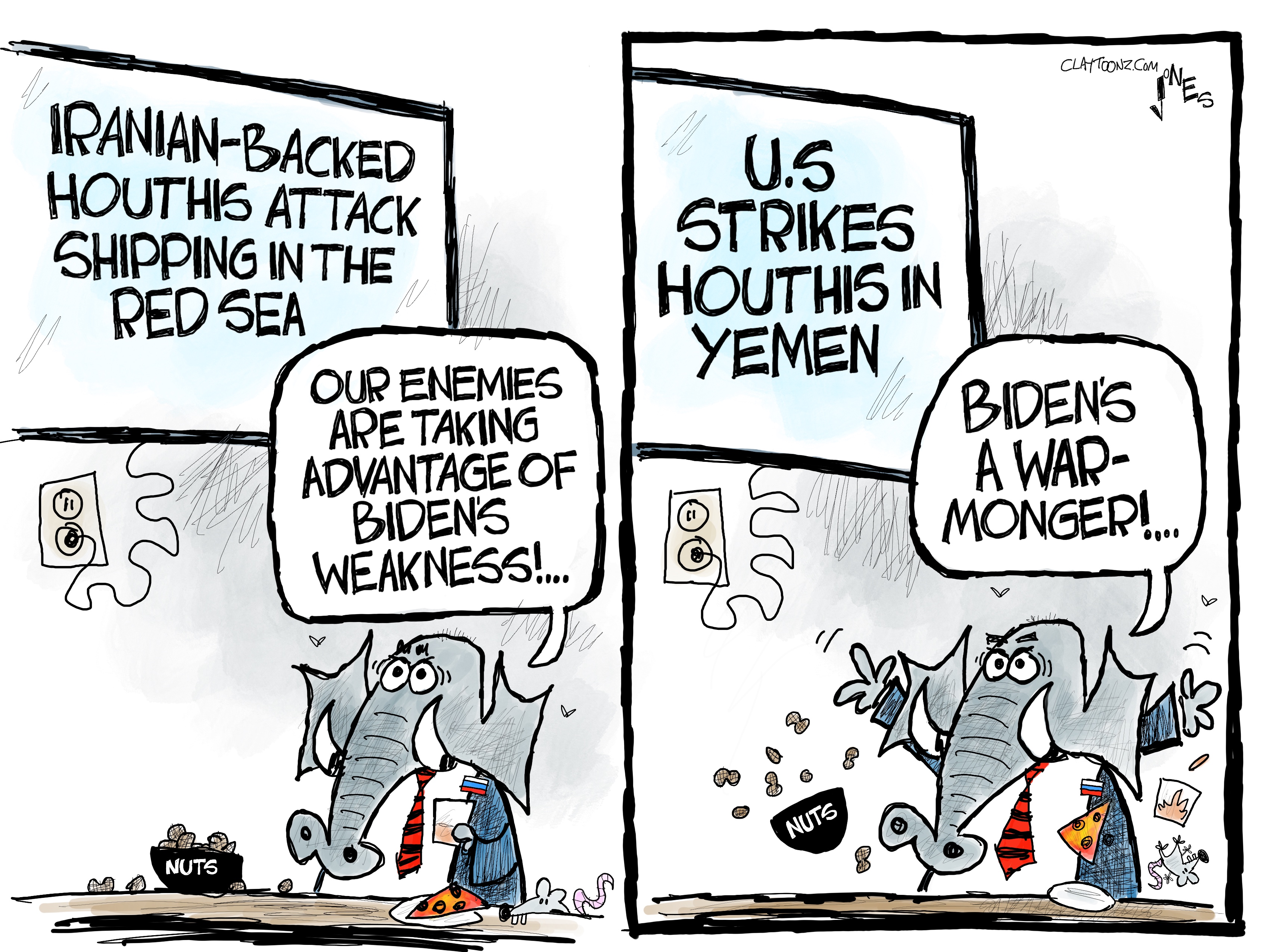 On Thursday, The United States and the United Kingdom began a massive retaliatory strike using warship- and submarine-launched Tomahawk missiles and fighter jets, hitting over a dozen Houthi targets. And naturally, Republicans who claim our enemies are taking advantage of us because of President Biden’s weakness are now calling him a warmonger.