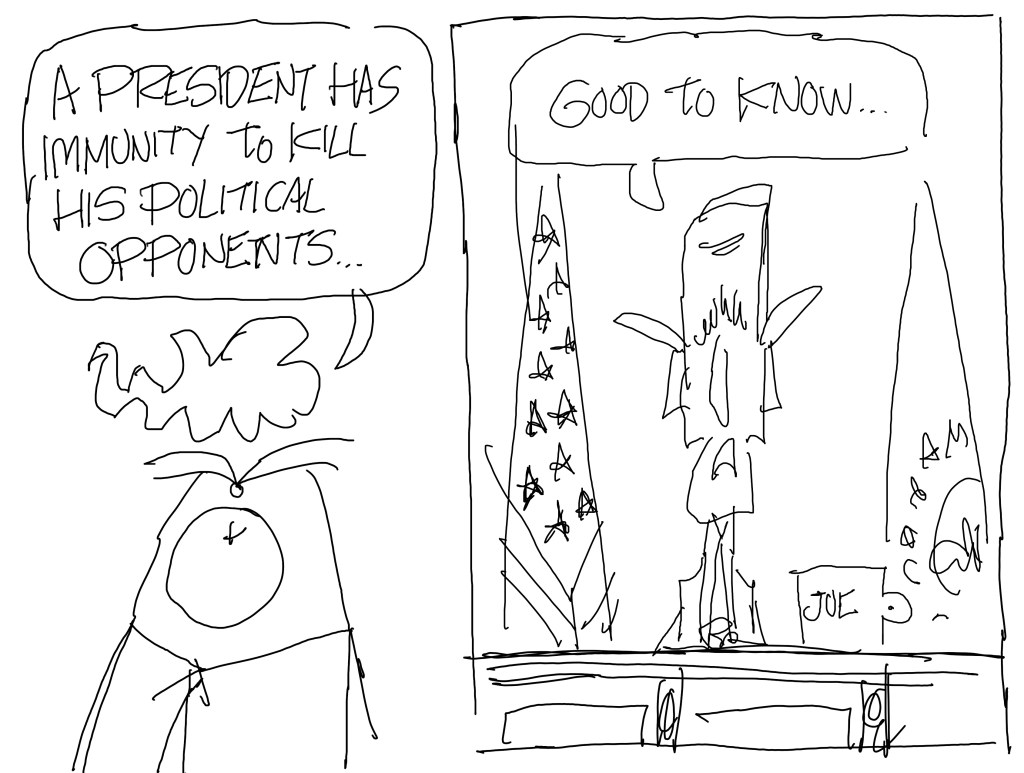 I really liked this one but I had already done one on the issue. Two cartoons on it would have been overkill, still funny, but overkill.