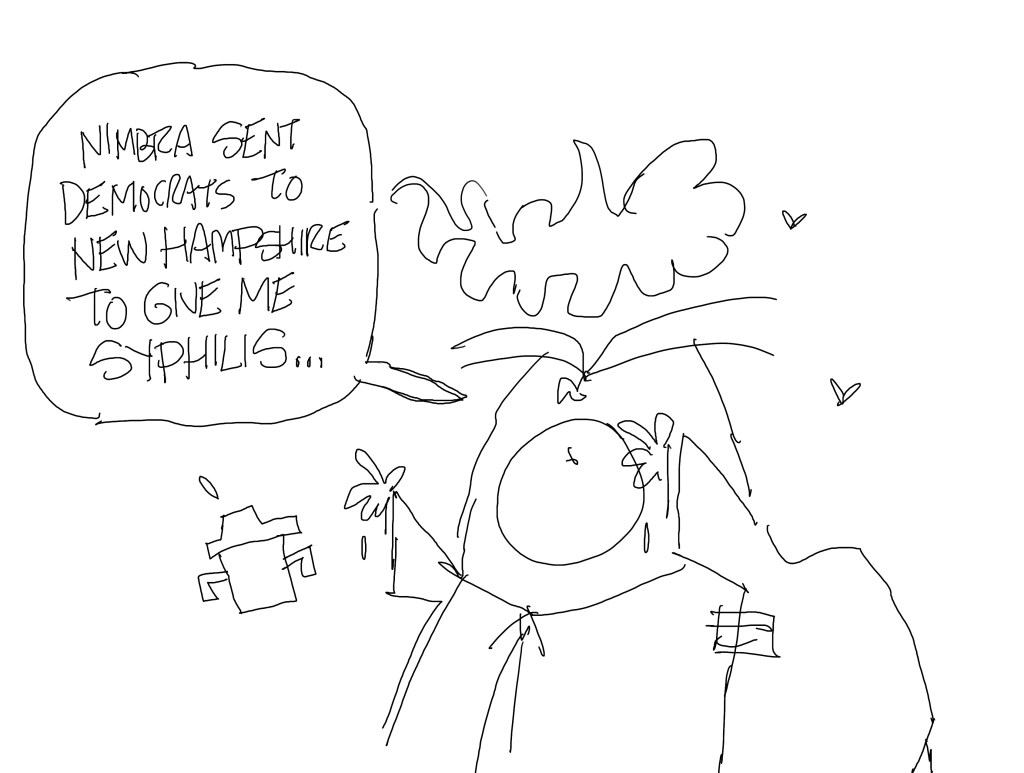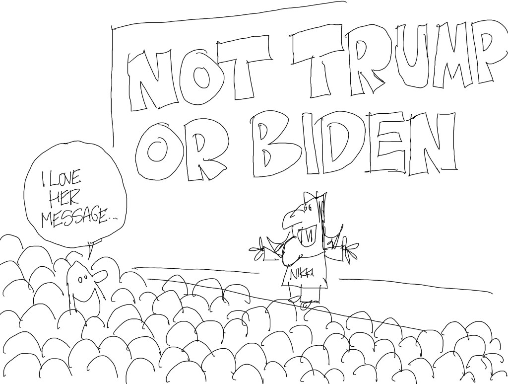 I don’t like this one at all and it was drawn before the New Hampshire primary and even before Ron DeSantis dropped out. I also researched granite and I don’t think it actually comes in the form of boulders. Dammit, why couldn’t it have been the Boulder primary?