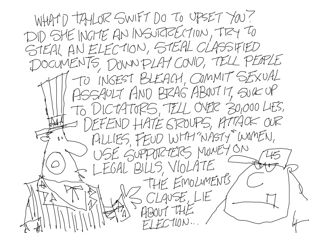 I had to do a little research for this one but I pushed it aside. I thought CNN might want a cartoon on Taylor and Travis, so I sketched a few ideas out. As it turned out, they didn’t want that from me last week.