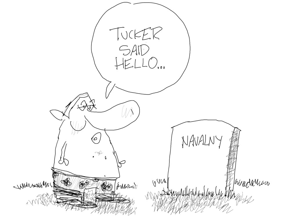 I like this one but I didn’t think I nailed it. My pal Mike Luckovich published a cartoon yesterday of Tucker and Navalny’s tombstone that is wonderful and I wish I had thought of it. It’s so good I kinda hate seeing it.