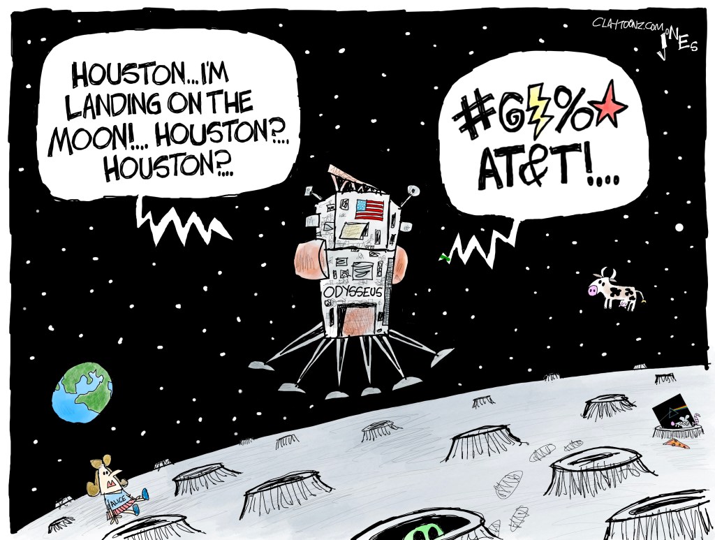 The corporate-owned Odysseus is the first US spacecraft to land on the moon since the Apollo 17 mission in 1972. The last time a spacecraft landed on the moon was last month when Japan did it. India sent a spacecraft last August. The Russians did it first in 1959. So far, we’re still the only nation to have sent humans to the moon. Unfortunately, none of them have been Donald Trump, who we could have left there.
