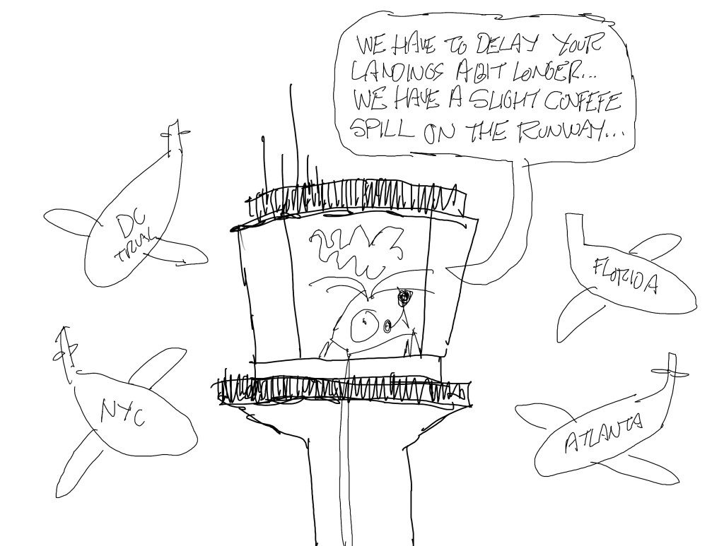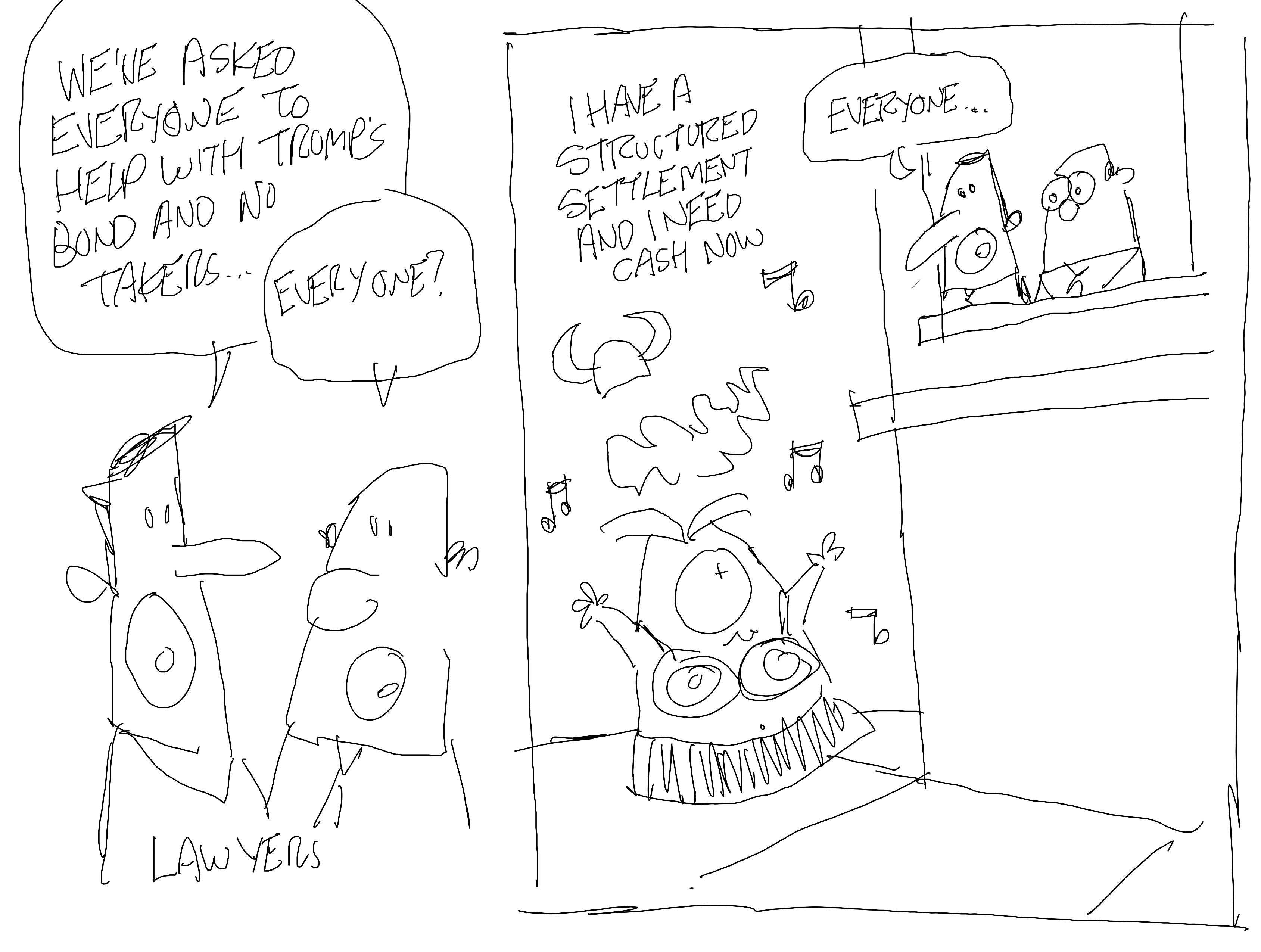 I really liked this cartoon. I chose this sheep cartoon over it because I thought it was more clever, but I still liked the Covfefe spill and planned to use it this week, so I spared it from last week’s blog. Well, other things got in the way and one of the trials has a date, so it’s probably time to let this go. I drew this on Friday, March 15.