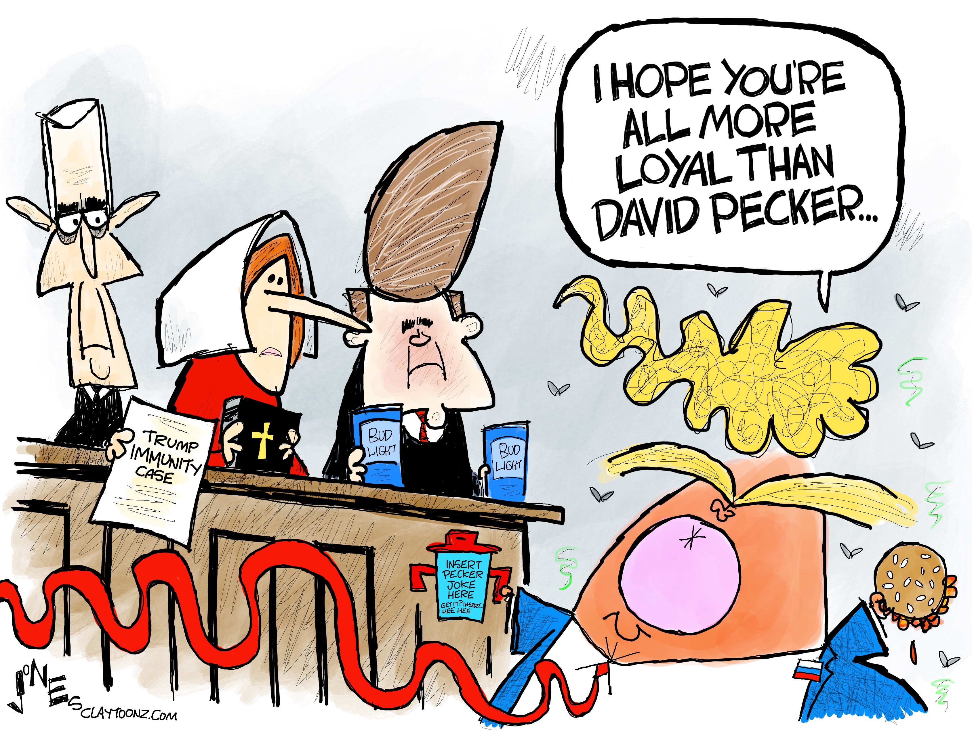 The answer to Trump’s question in the cartoon is that there are justices on the Supreme Court more loyal than David Pecker…and together, they’re a bag of dicks.