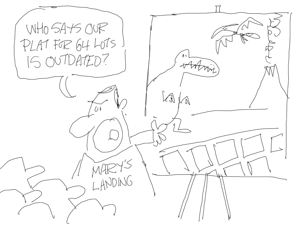 I’m a former city planner, and while I don’t know about the Mary’s Landing thing, I love the rough about the outdated plat! Also the rest, especially the doggy under the bed.